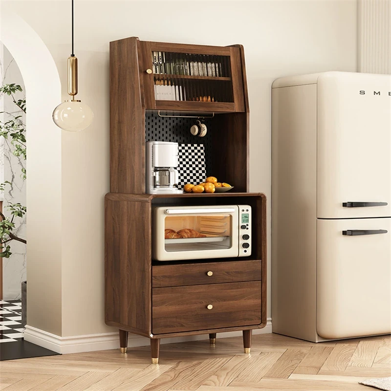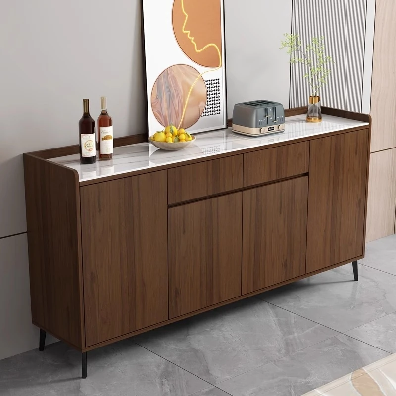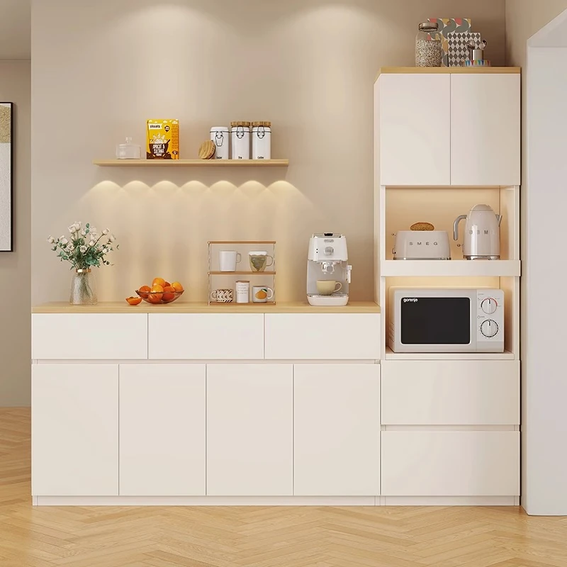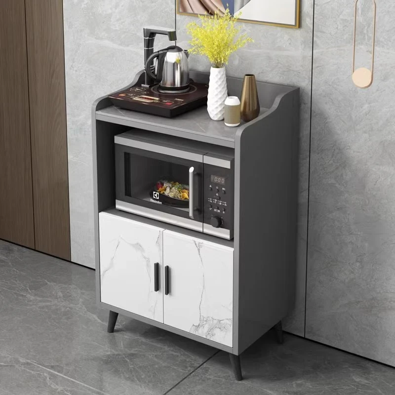 ベイジュ軽奢スタイルの岩板電子レンジキャビネット シンプルでモダンなダイニングサイドボード 家庭用リビングティーキャビネット おしゃれで機能的な収納力抜群の収納家具