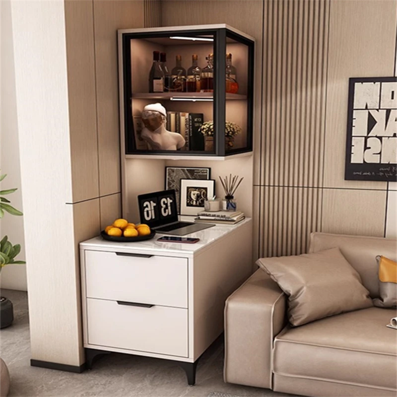ウォールアタッチ型モダンミニマリストリビング用サイドキャビネット - スタイリッシュで機能的、空間を有効活用!スマートオーガナイザーで新しい生活スタイルを提案。