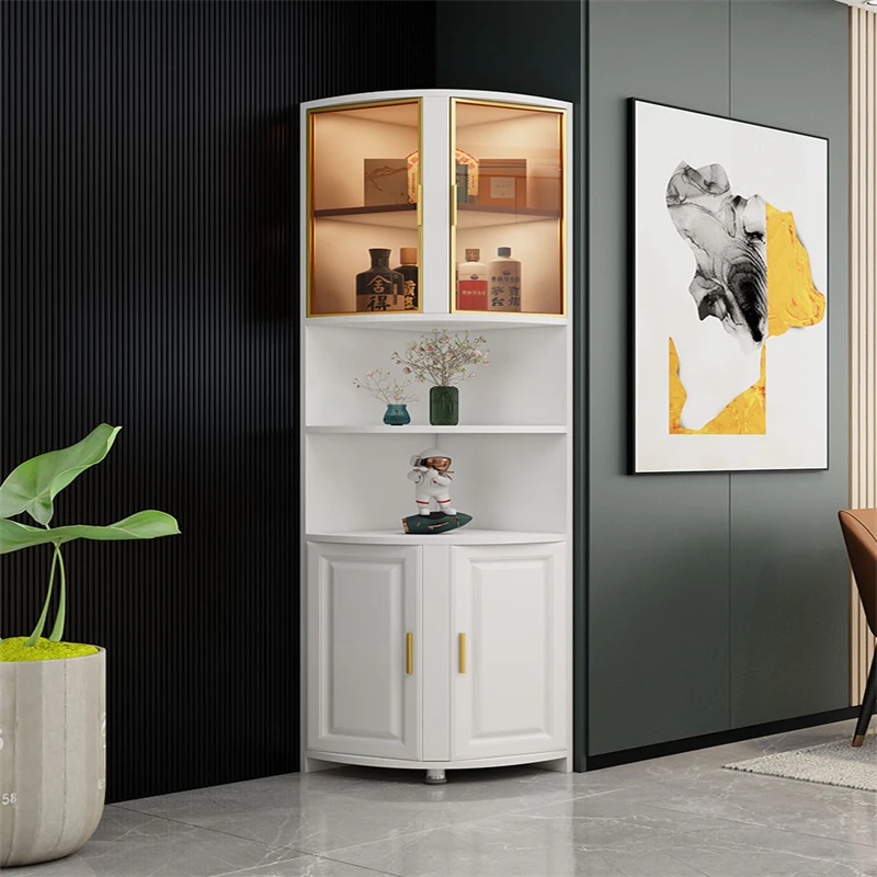 洗練されたデザインの傲景コーナーキャビネット|30cmのガラスエッジキャビネットで、お部屋の角をスタイリッシュに収納。トライアングルシェルフで、限られたスペースを有効活用!クールな角収納で、あなたの寝室を美しく演出。