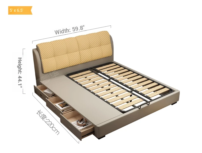 [Flagship Edition] Italian Bogern Cowhide Single Bed + Three Drawers + Velvet Double-sided Mattress