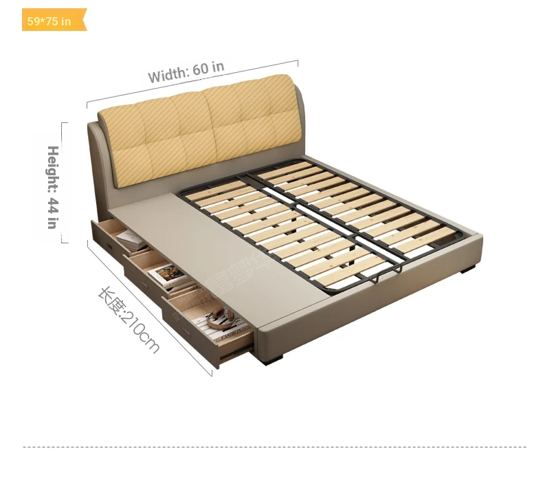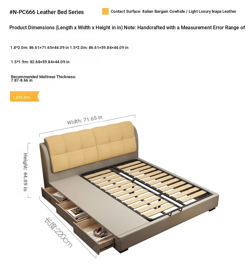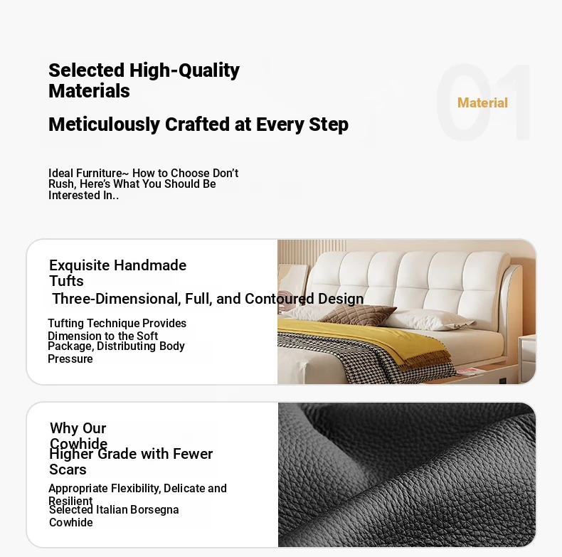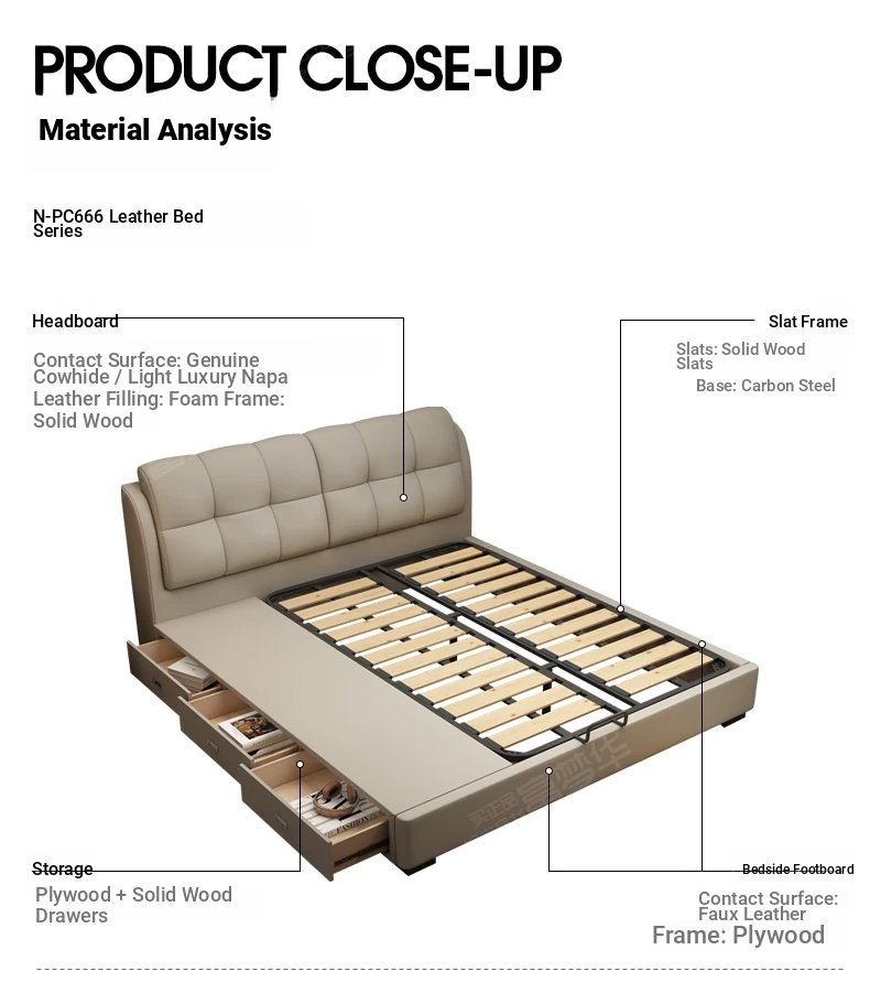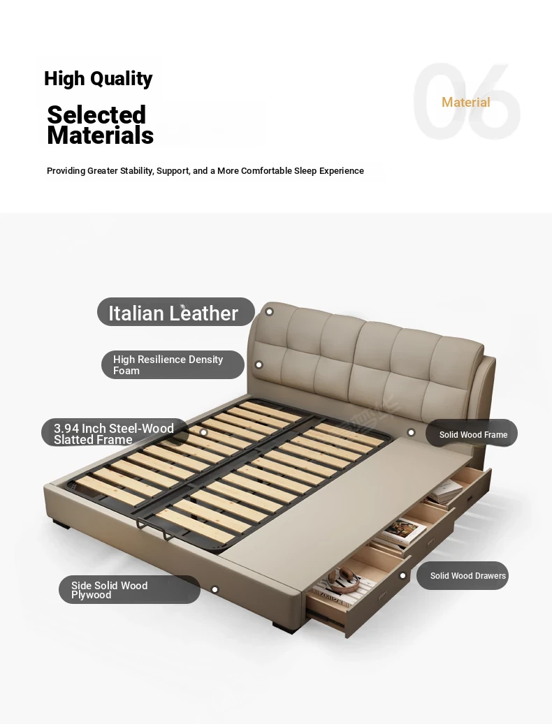[Flagship Edition] Italian Bogern Cowhide Single Bed + Three Drawers