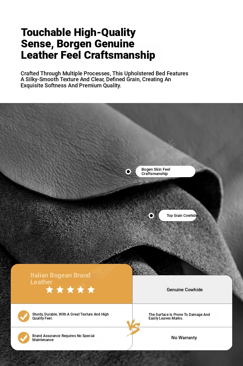 [Luxury Edition] Italian Bogern Cowhide Single Bed + Velvet Double-sided Mattress