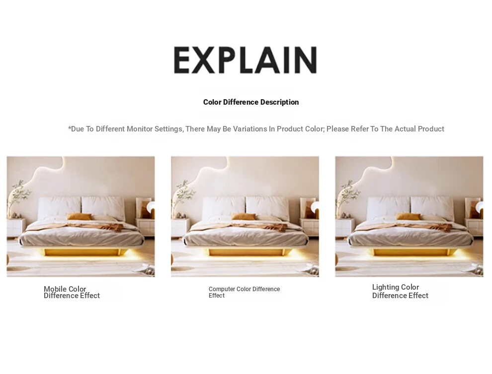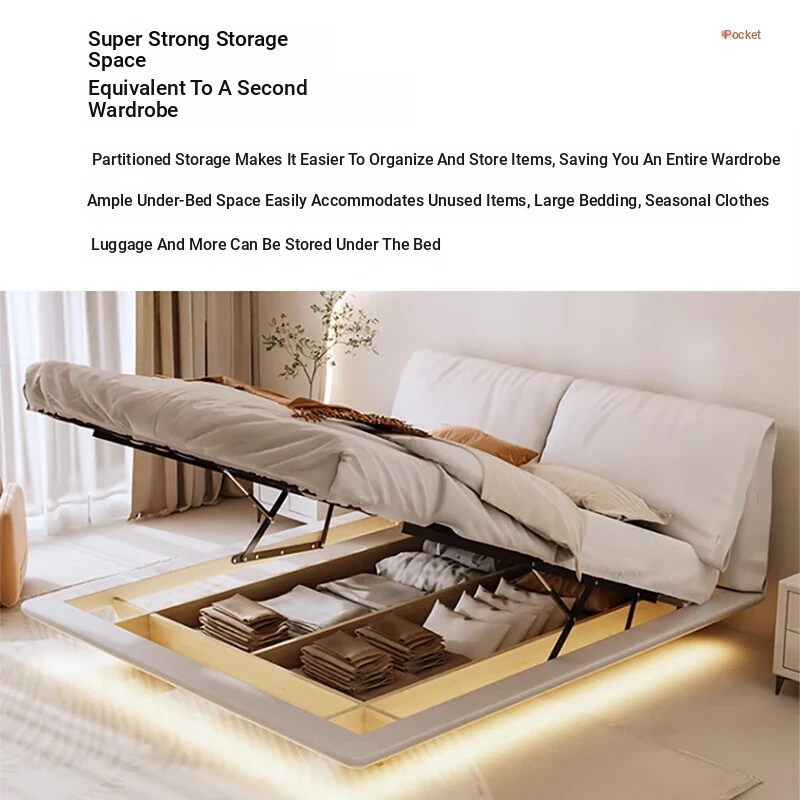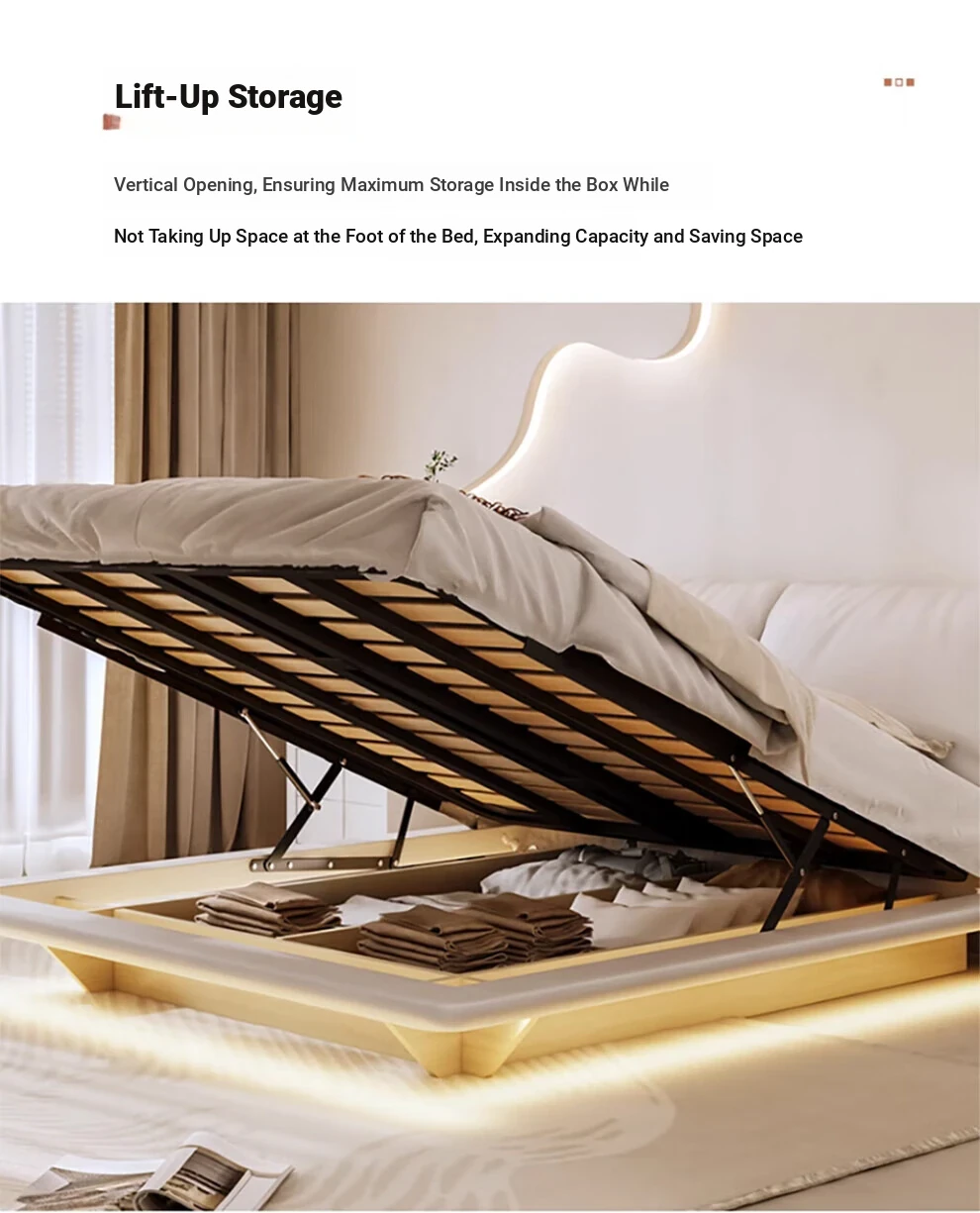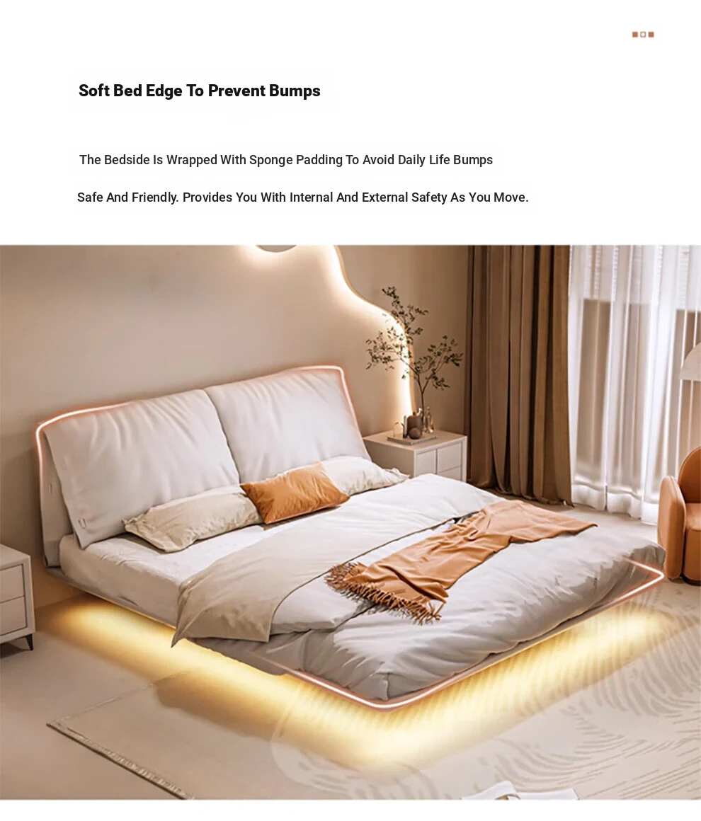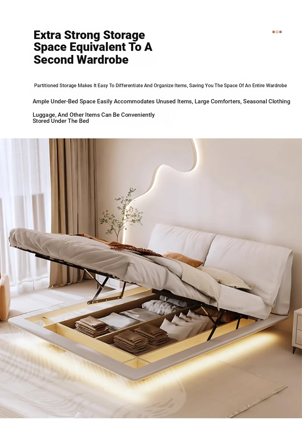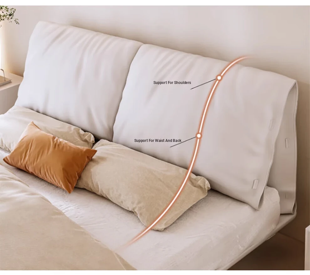 Kaimiao Creamy Floating Bed - French Style Genuine Leather Soft-Backed Double Bed for Master Bedroom, Modern Minimalist Luxury with Elephant Ear Design - Perfect for Stylish Living Spaces.