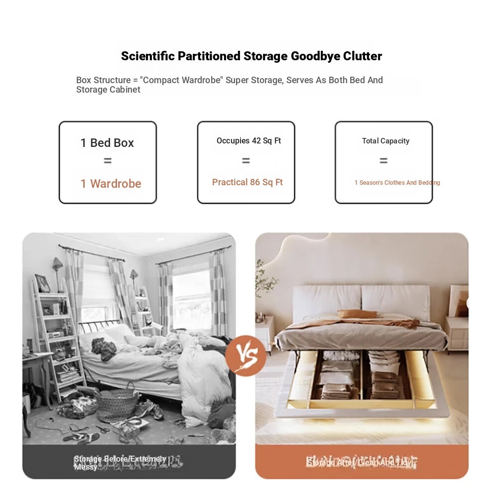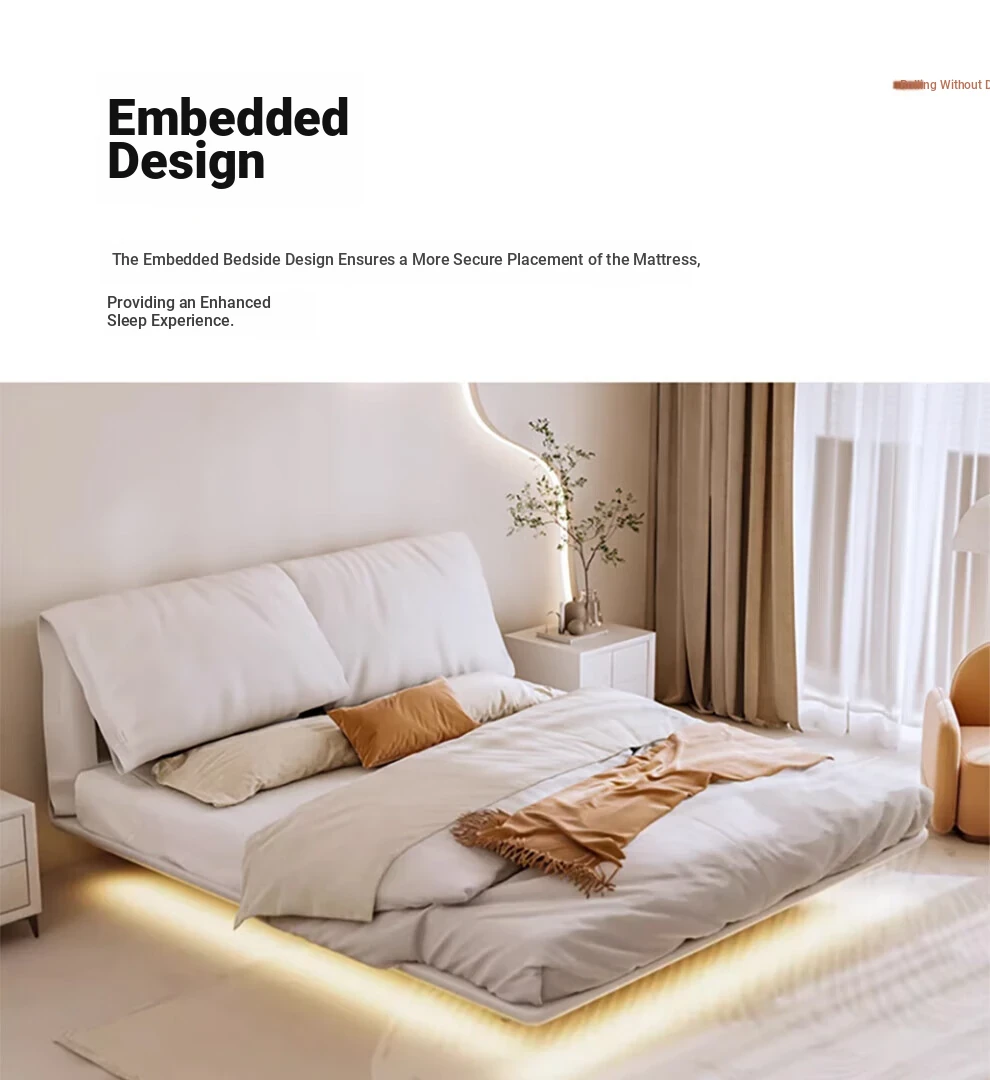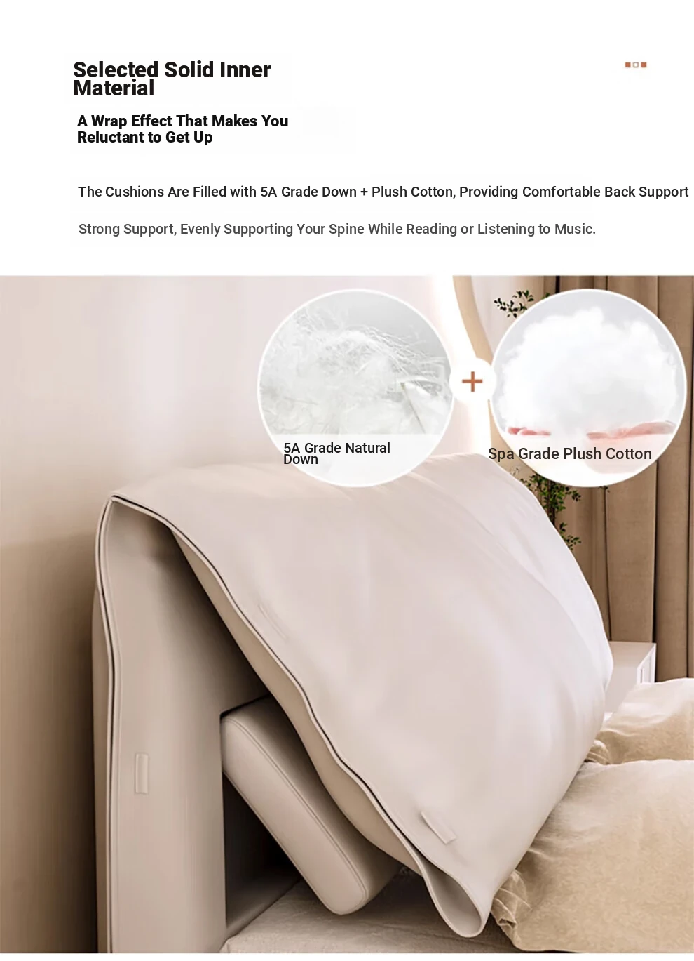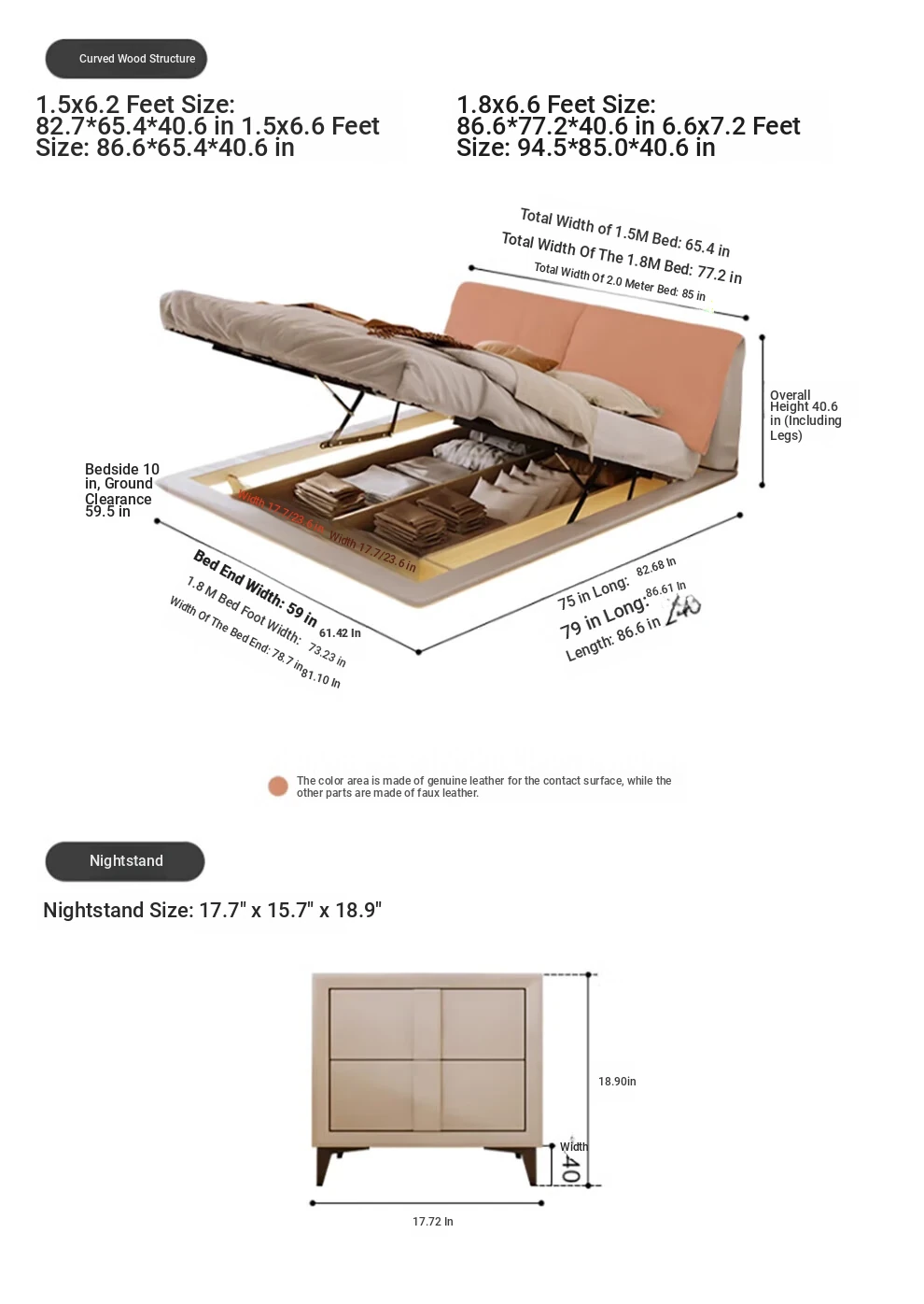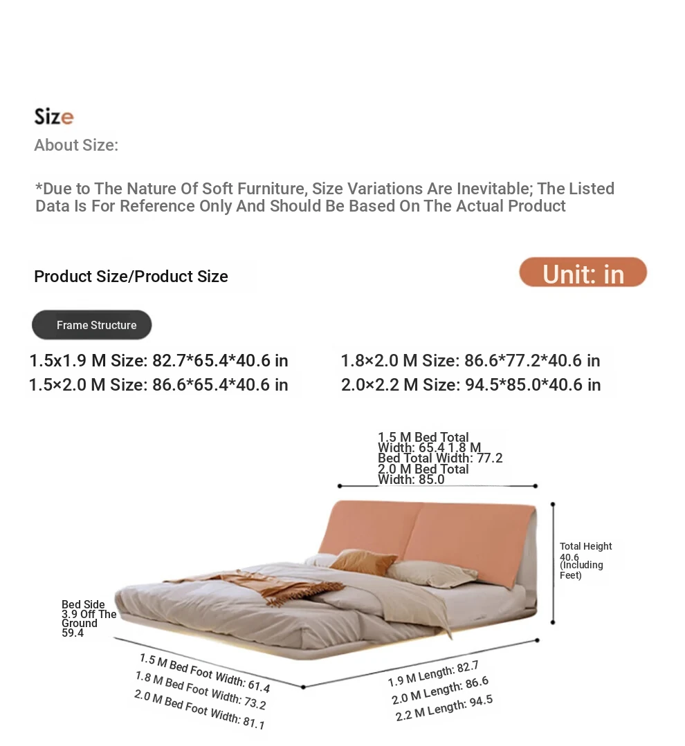Kaimiao Creamy Floating Bed - French Style Genuine Leather Soft-Backed Double Bed for Master Bedroom, Modern Minimalist Luxury with Elephant Ear Design - Perfect for Stylish Living Spaces.