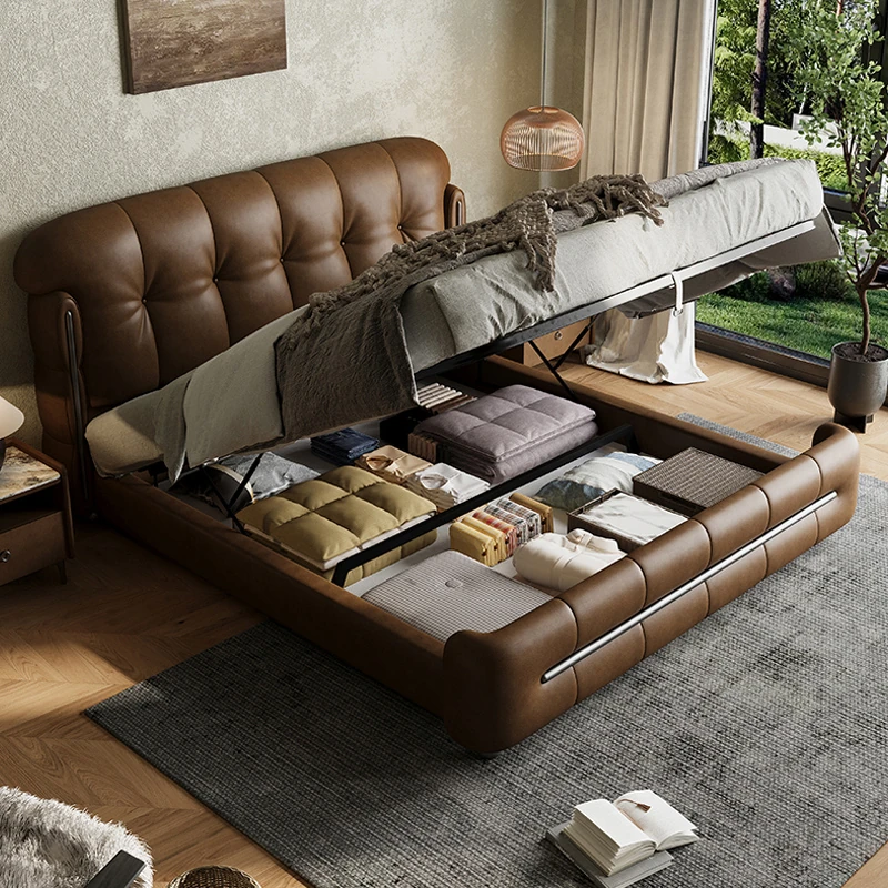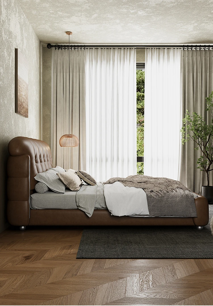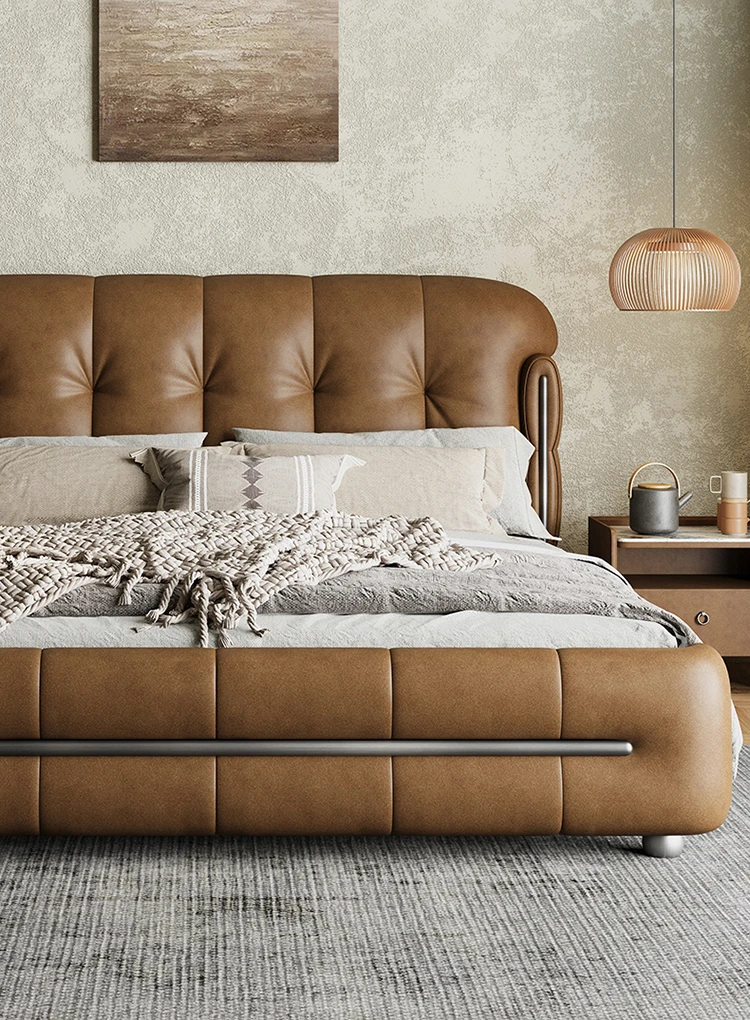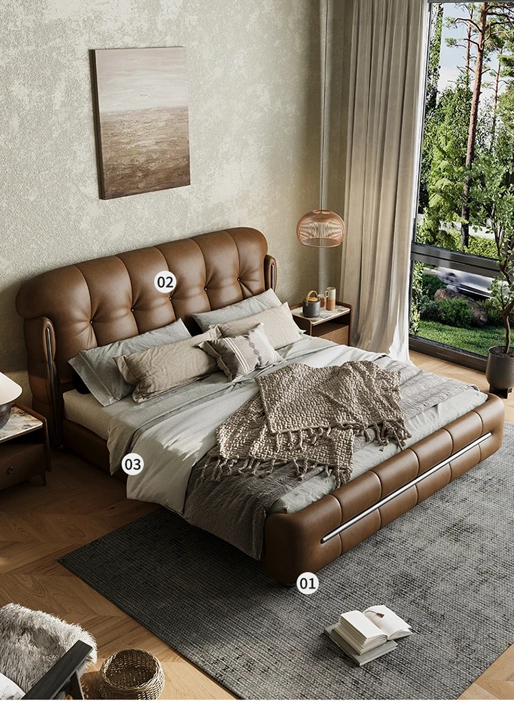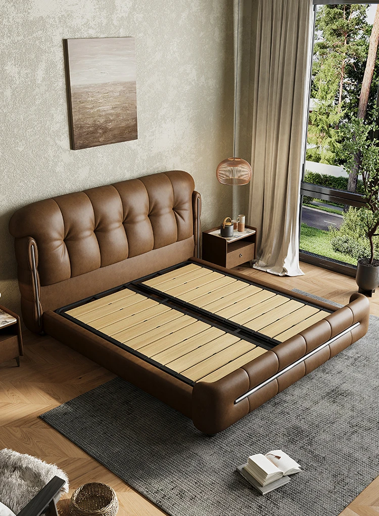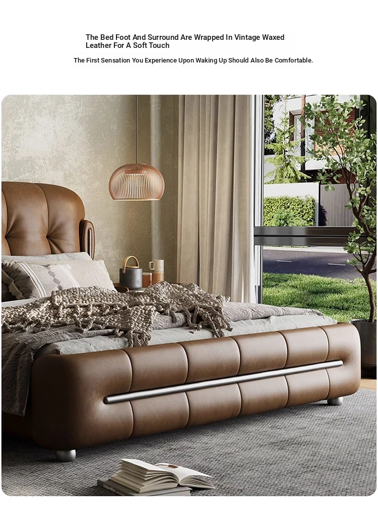 [Solid wood frame + oil wax skin] Accessible Luxury bed + bedside table * 1([Solid wood frame + oil wax skin] Accessible Luxury bed + bedside table * 1)