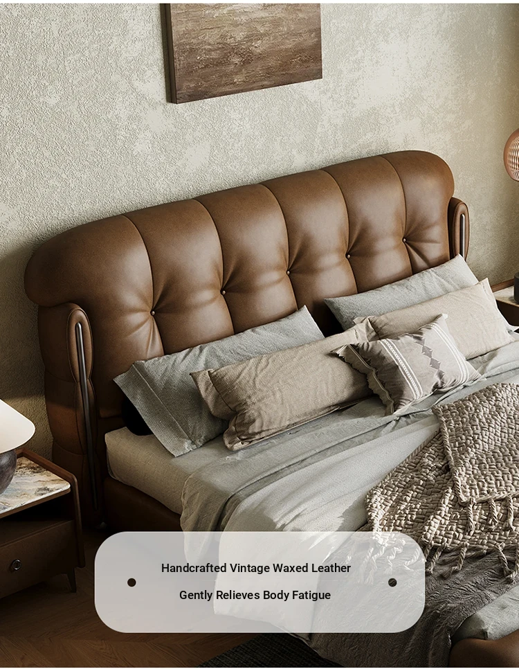 [Solid wood frame + oil wax skin] Accessible Luxury bed + bedside table * 2([Solid wood frame + oil wax skin] Accessible Luxury bed + bedside table * 2)