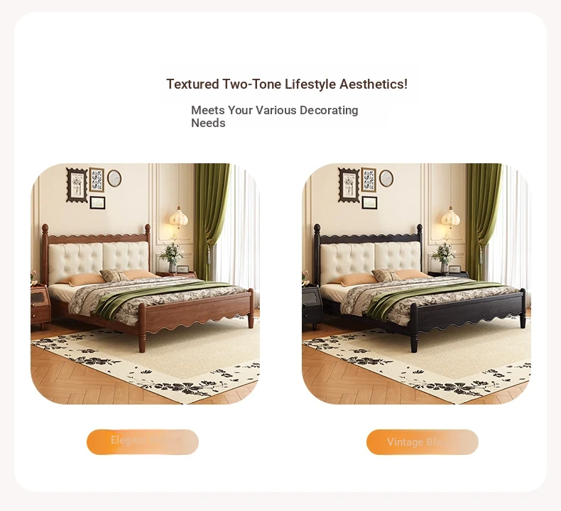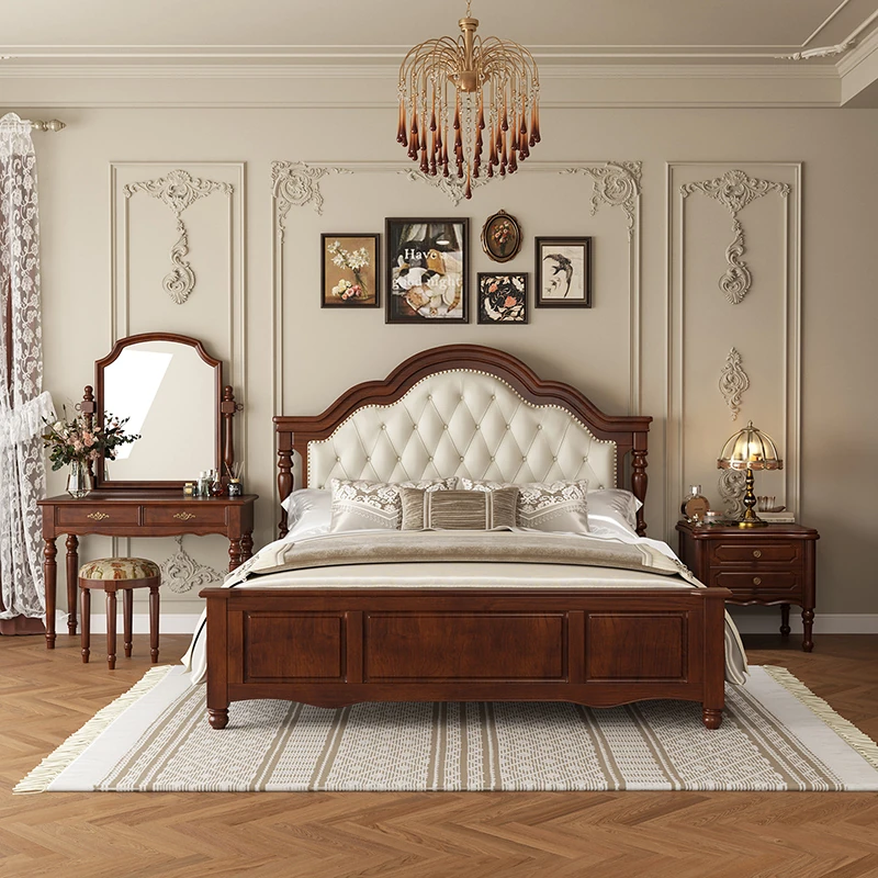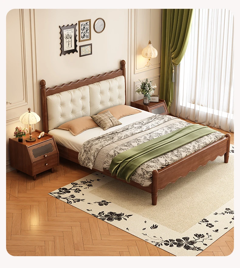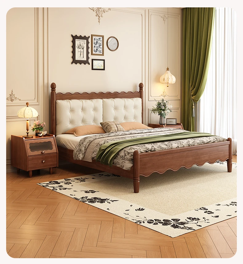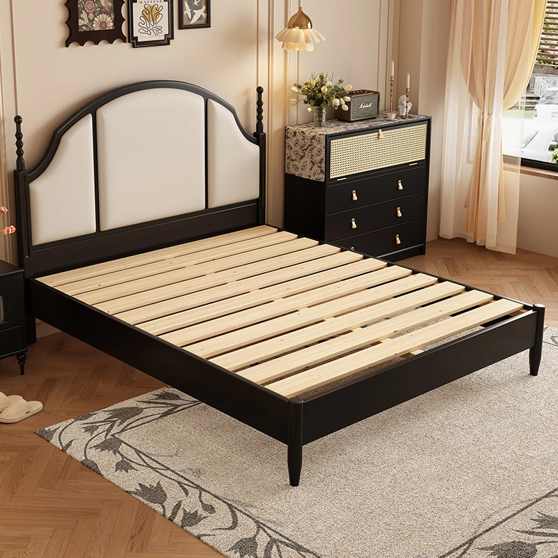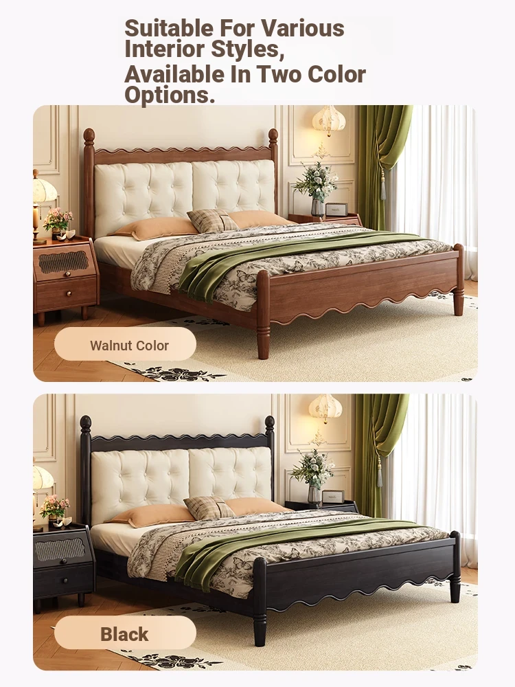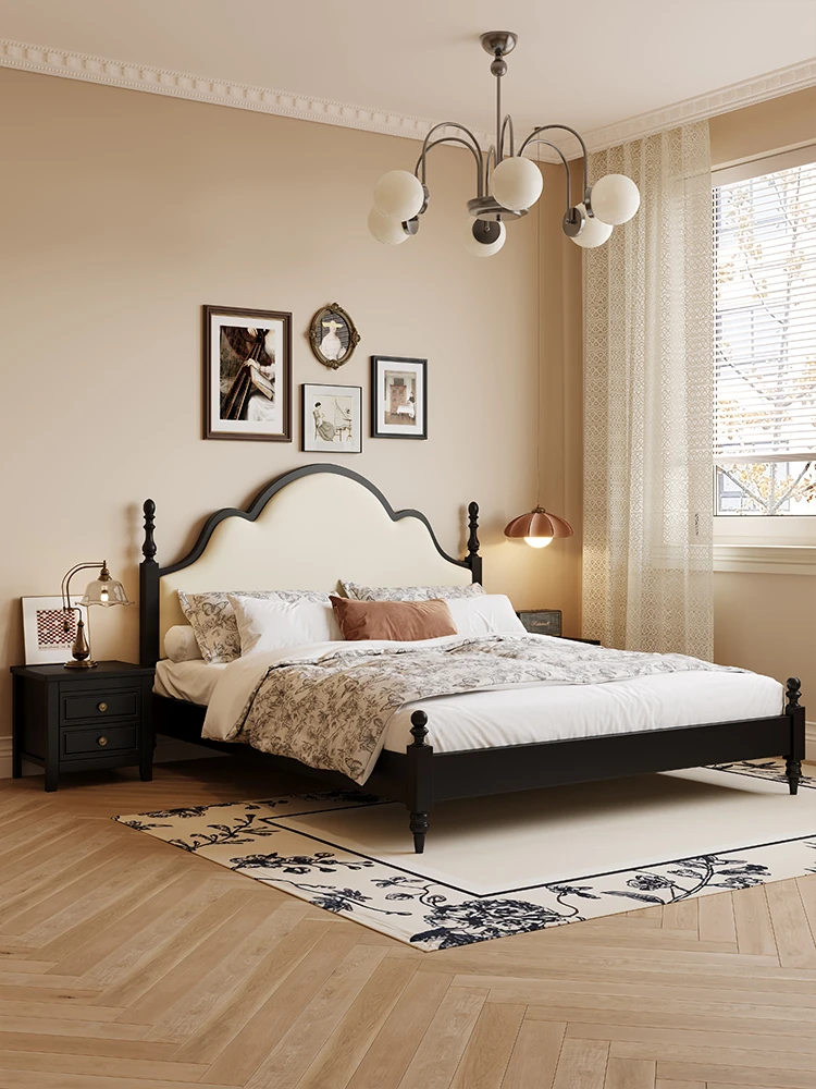Yuqin Vintage American Light Luxury Black Solid Wood Bed - Elegant Design for a Cozy Bedroom Retreat