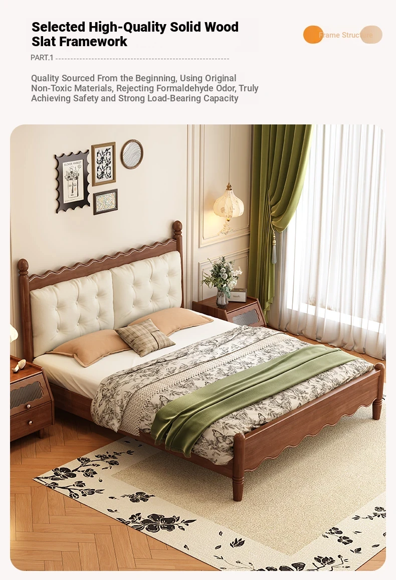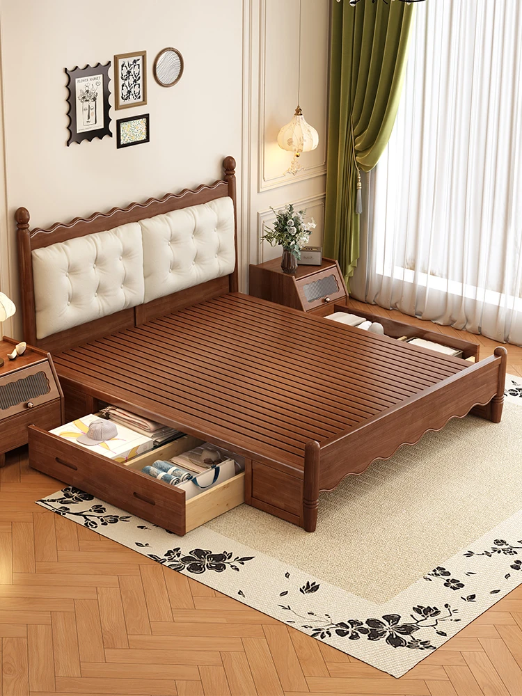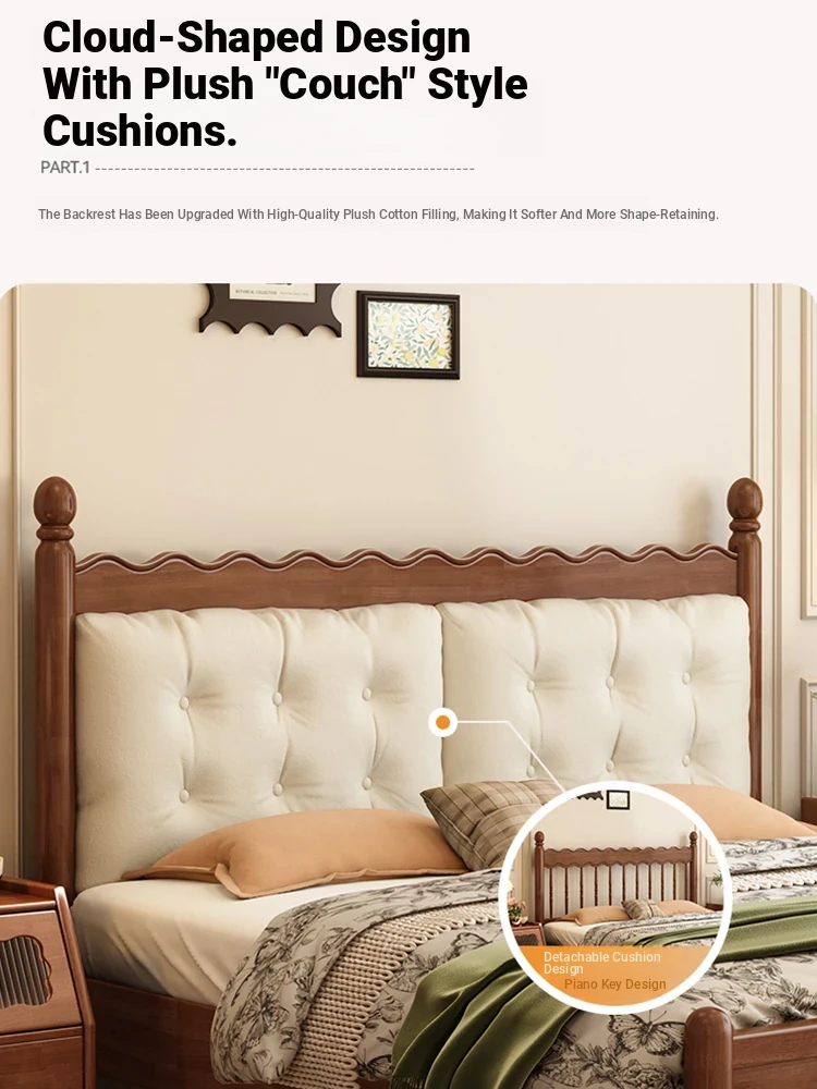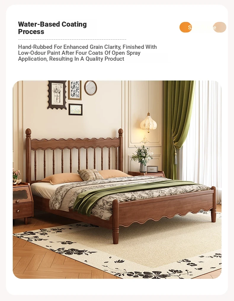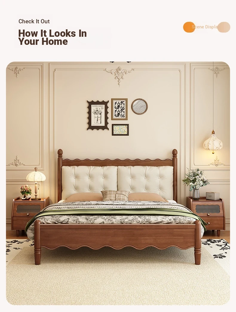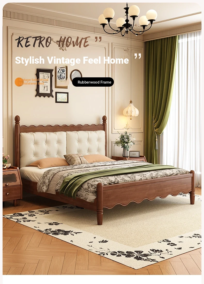 Yuqin Vintage American Light Luxury Black Solid Wood Bed - Elegant Design for a Cozy Bedroom Retreat