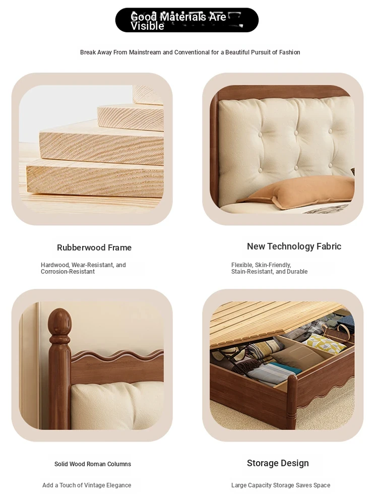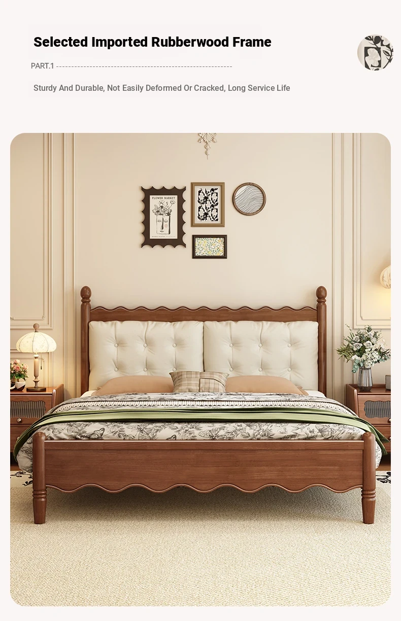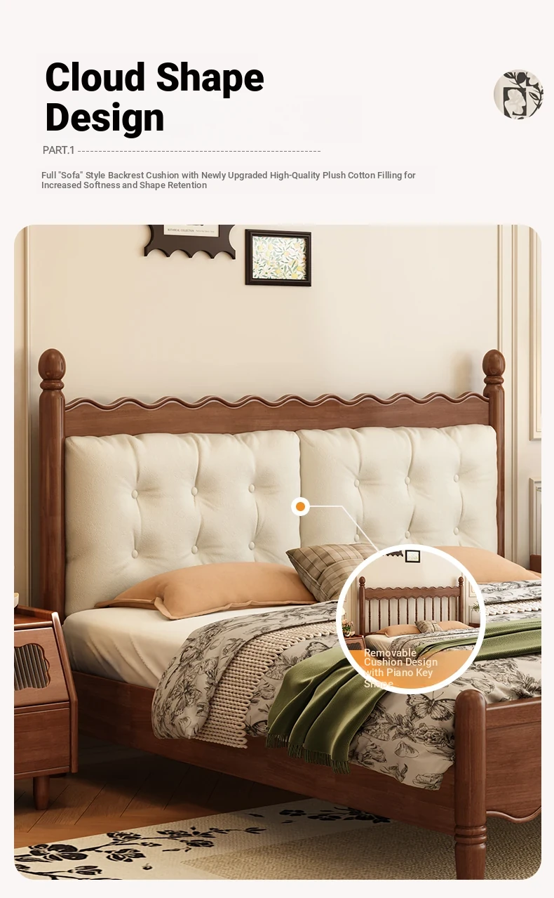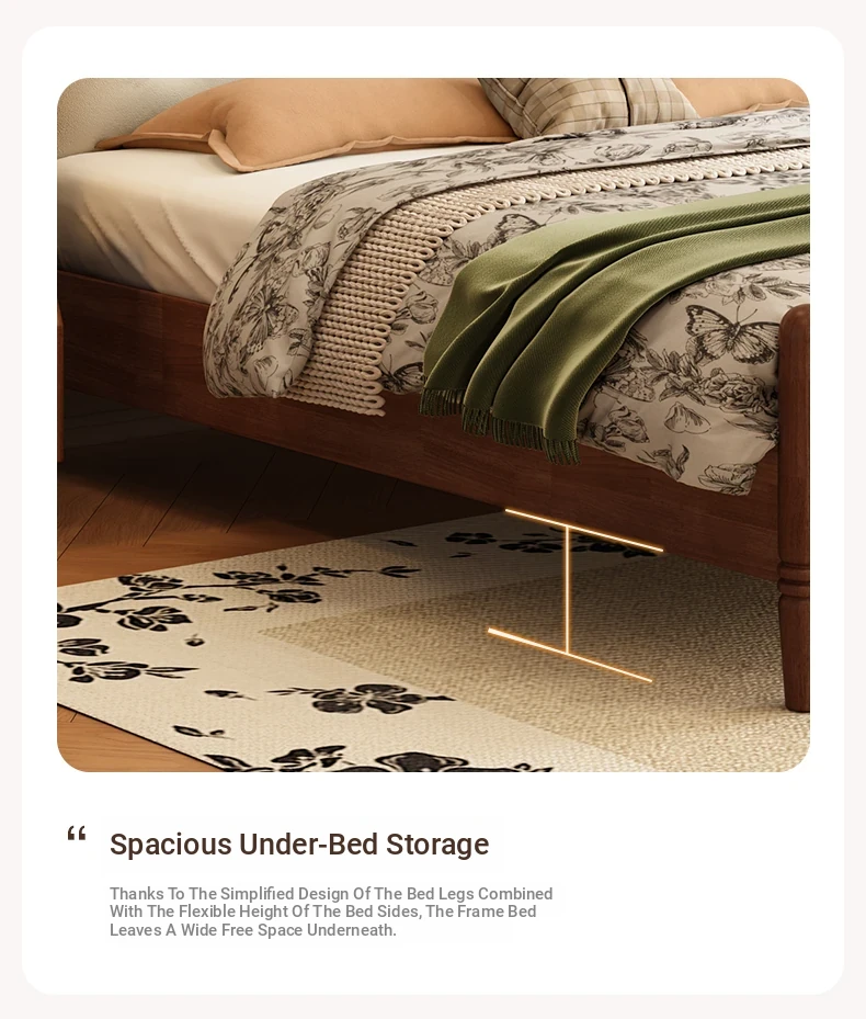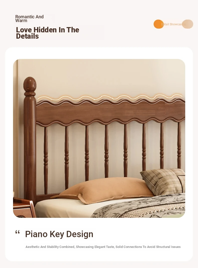 Yuqin Vintage American Light Luxury Black Solid Wood Bed - Elegant Design for a Cozy Bedroom Retreat