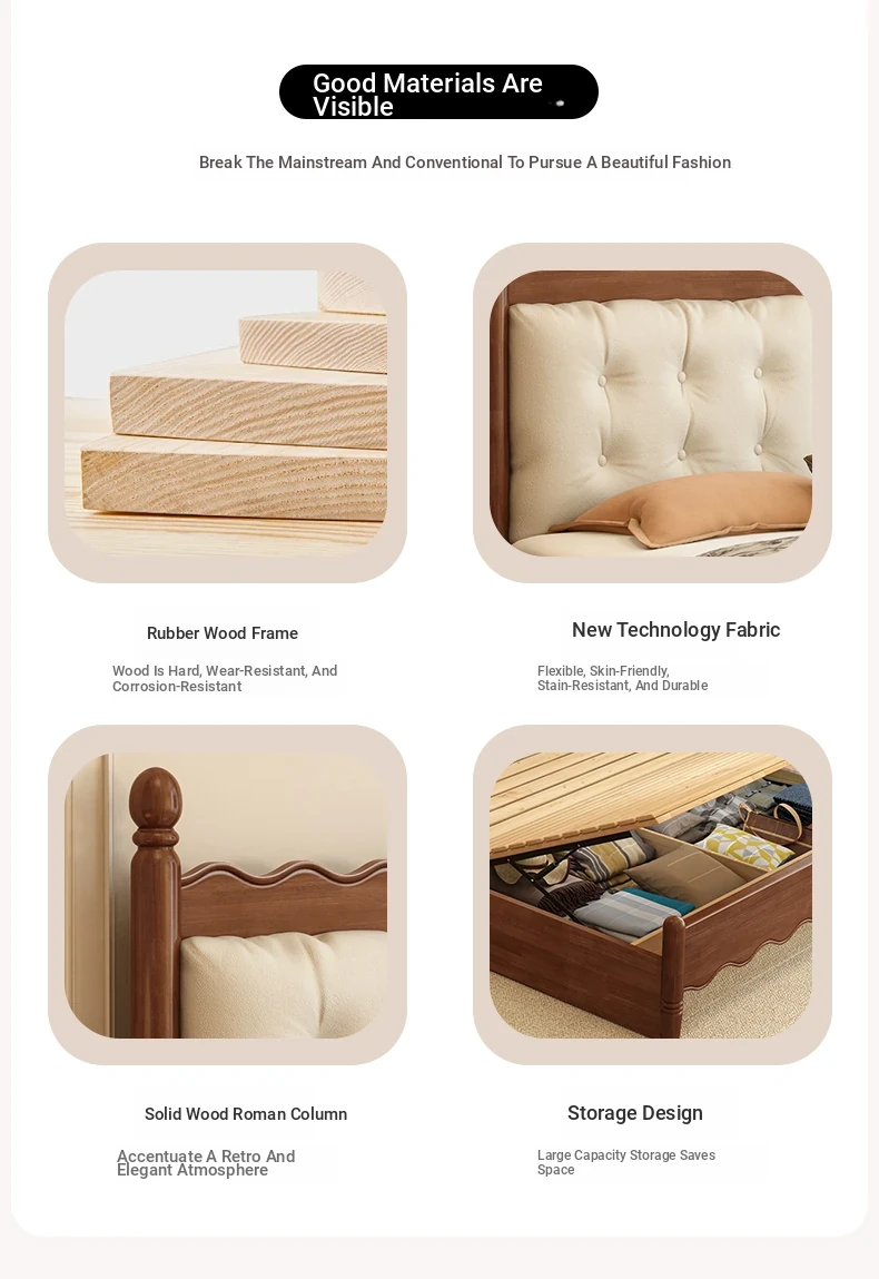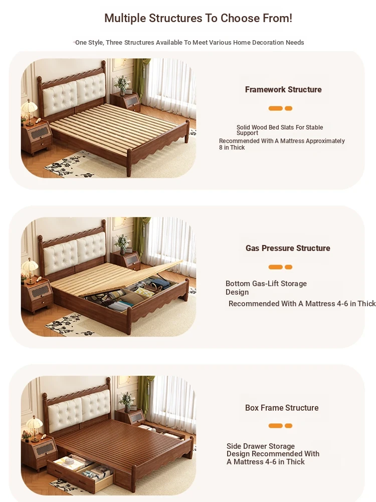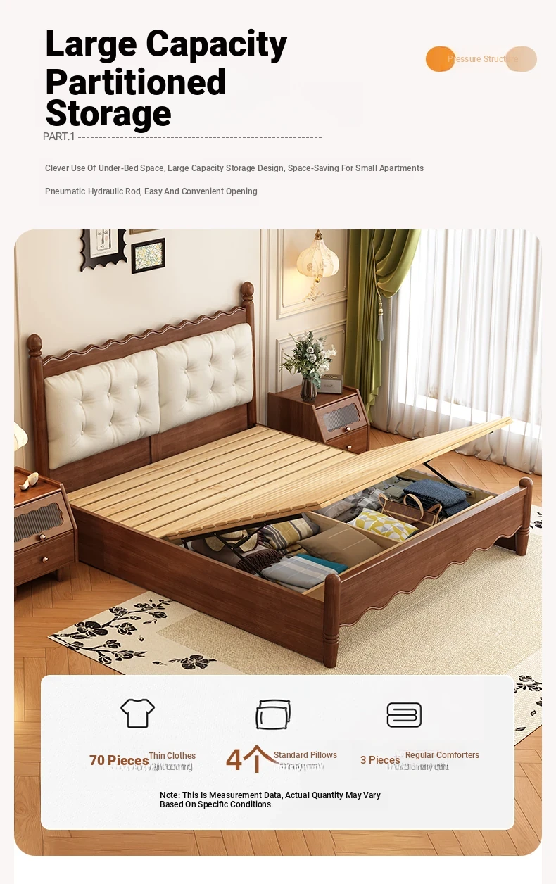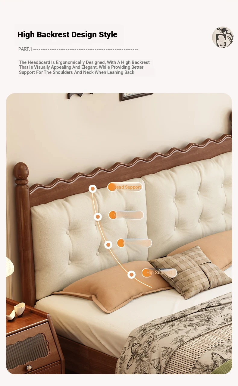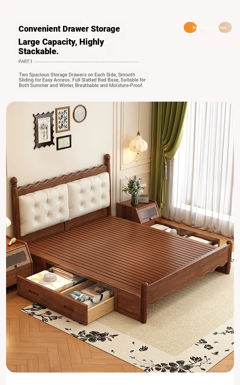 Yuqin Vintage American Light Luxury Black Solid Wood Bed - Elegant Design for a Cozy Bedroom Retreat