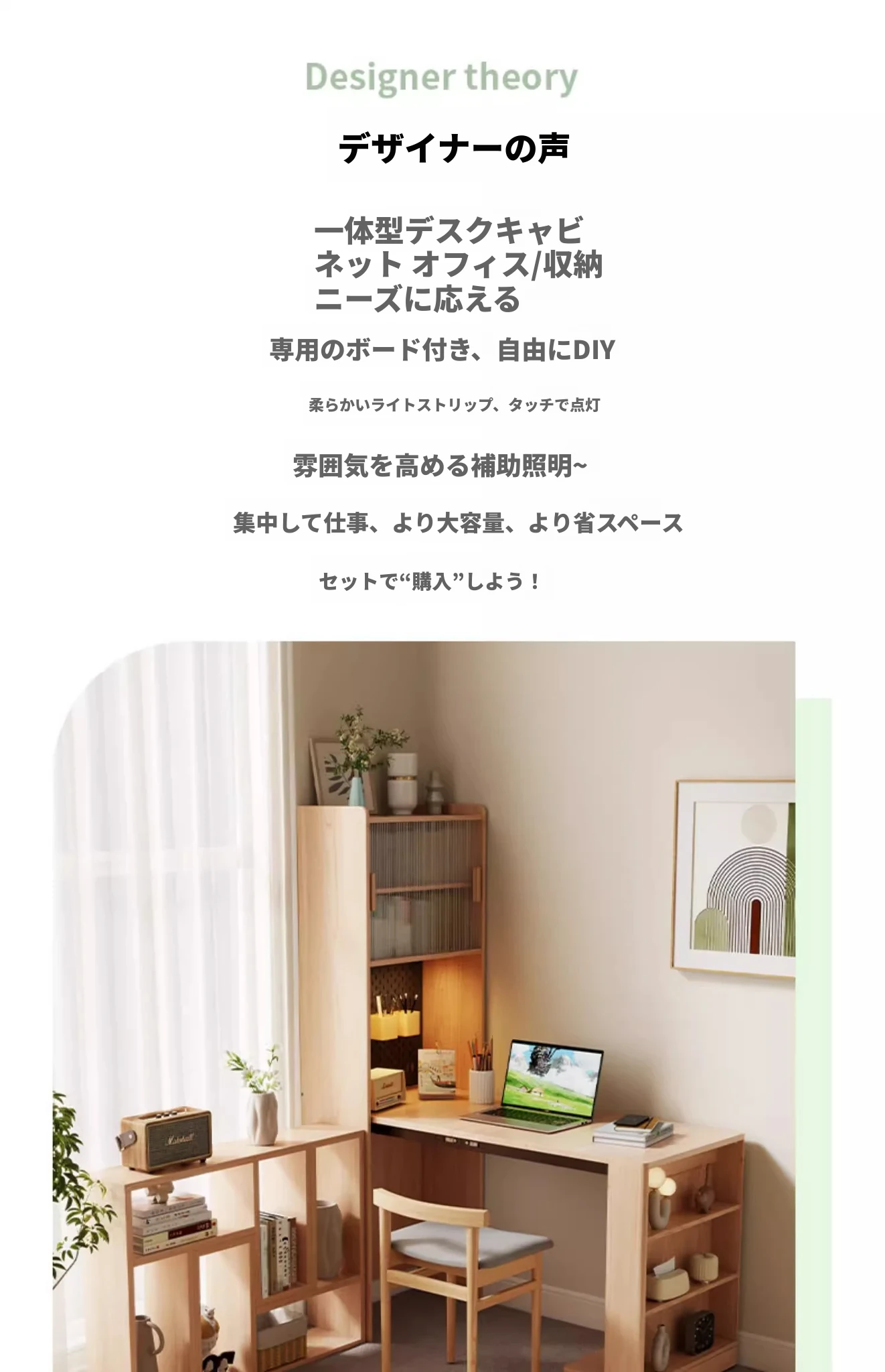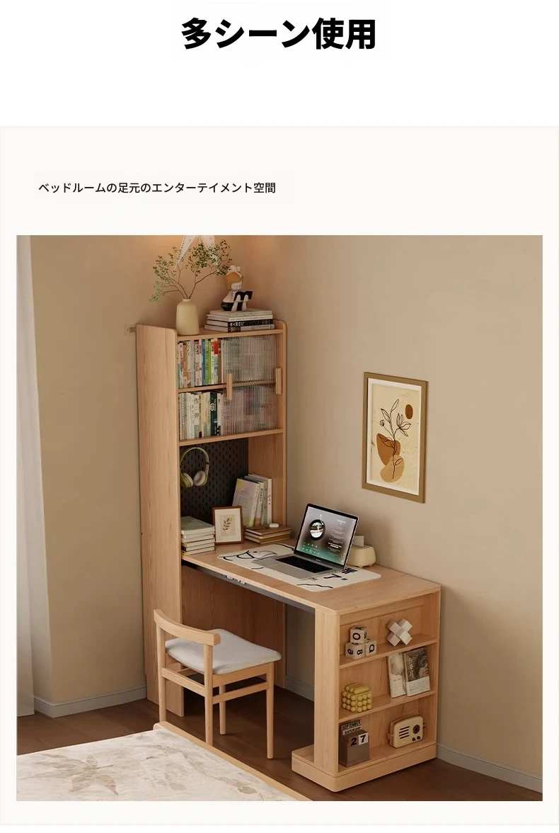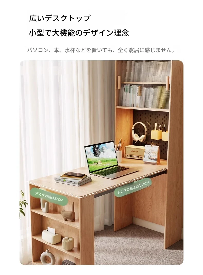 アイゼン耐久性実木折りたたみ書斎デスク&キャビネット一体型!省スペース設計の角型学習デスク。小さな部屋にもぴったりなオフィス用デスク!あなたの学びをサポートします。