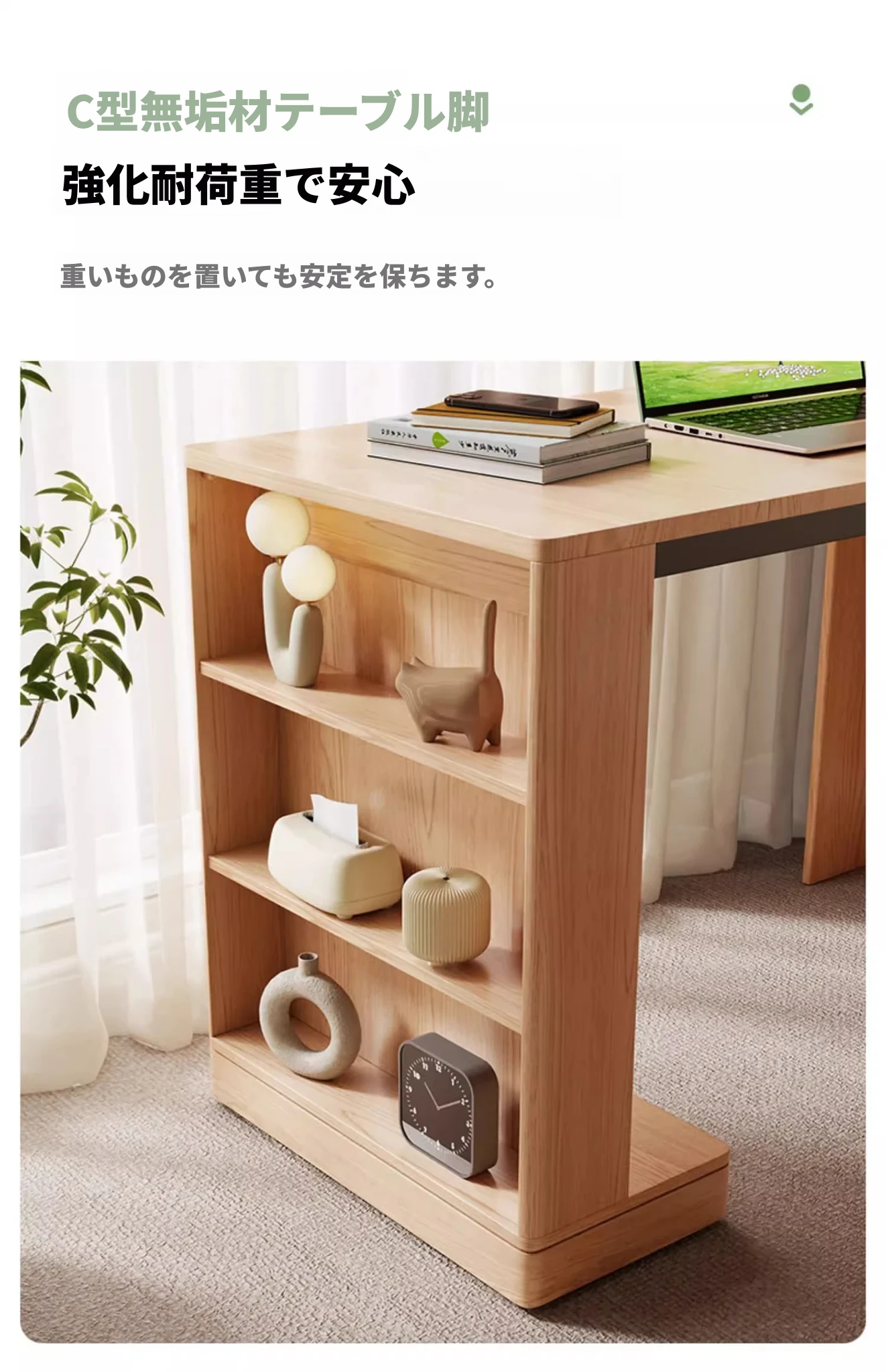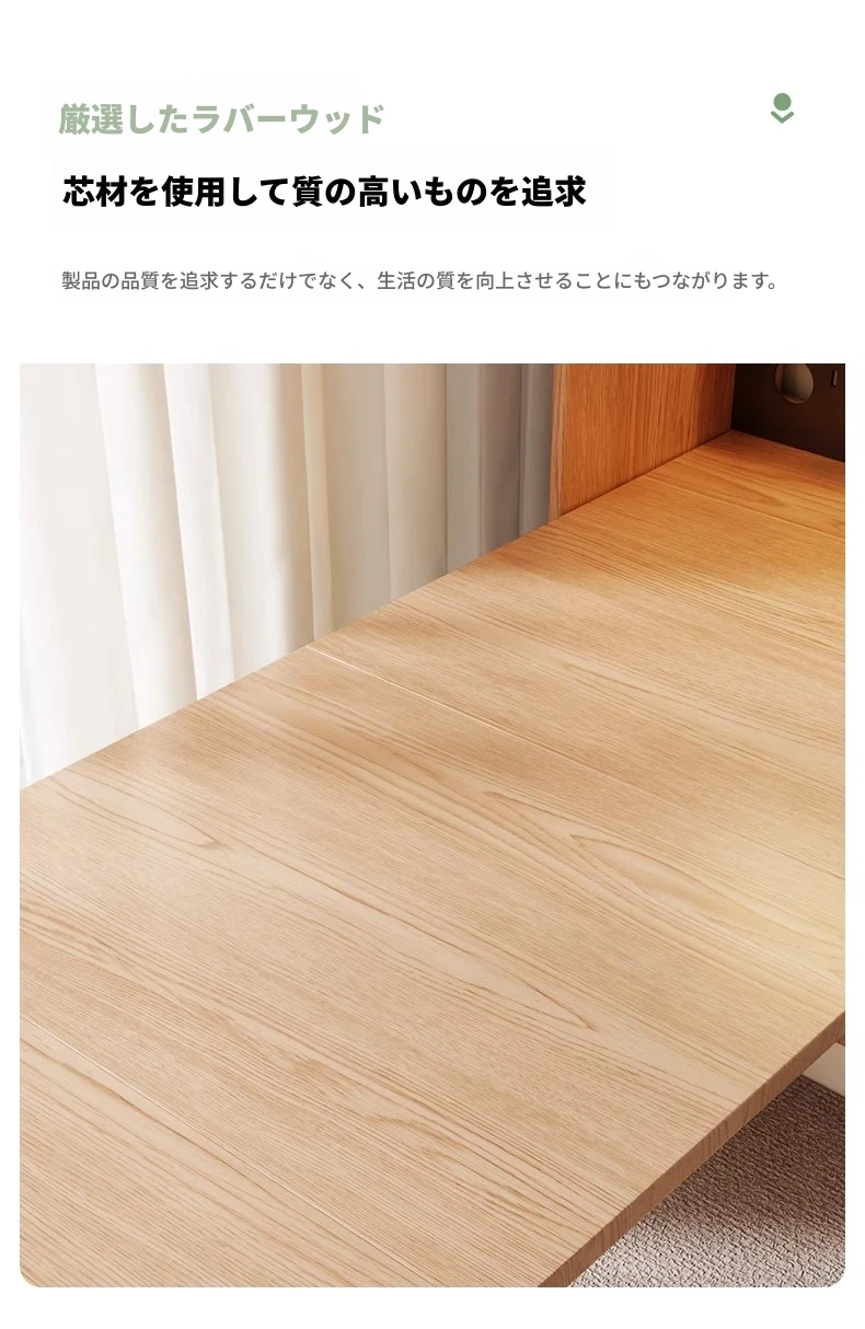 無垢材折りたたみデスク+電源トラック-ナチュラルウッド色
