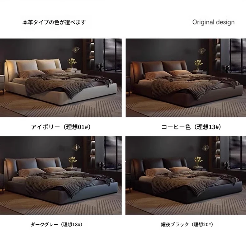 エレガントな本革イタリアンスタイルの高級主寝室用婚礼ベッド - 愛らしいデザインで、お二人の特別な瞬間を彩ります。