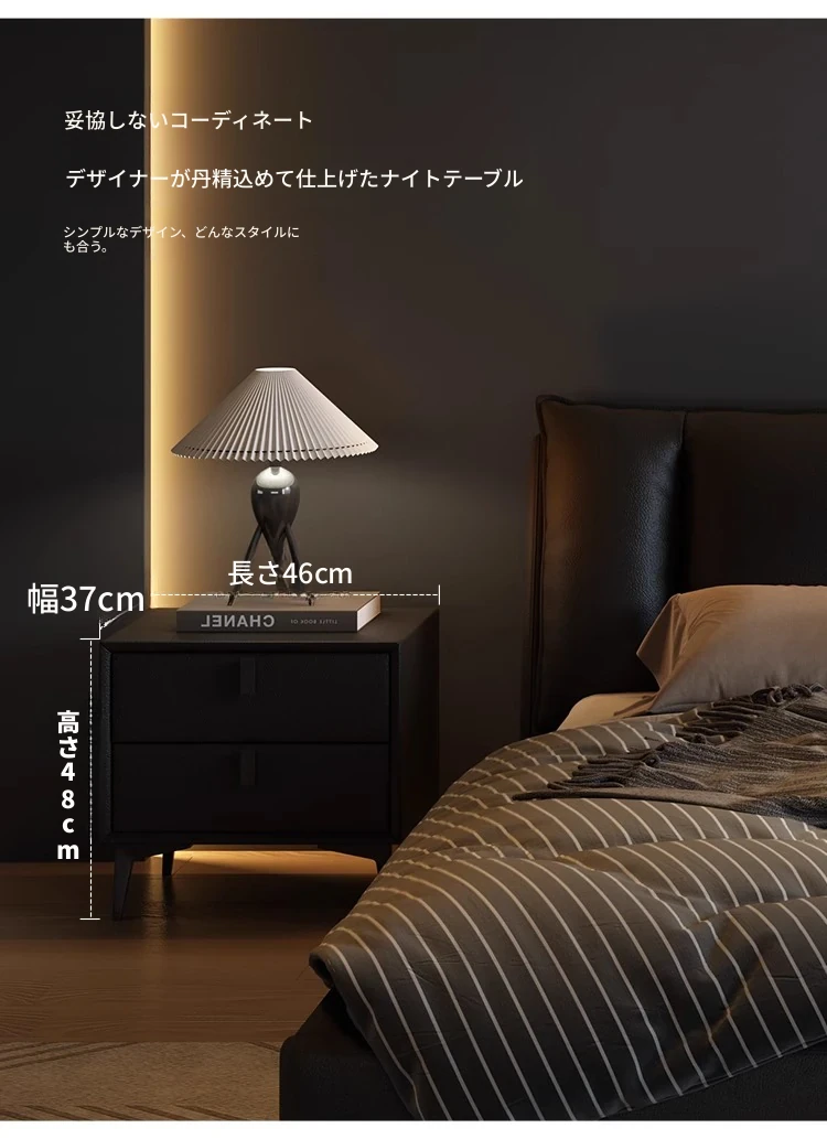 【エクスクルーシブモデル】本革ベッド・スチールウッドフレーム+ナイトスタンド 【エクスクルーシブモデル】本革ベッド・スチールウッドフレーム+ナイトスタンド