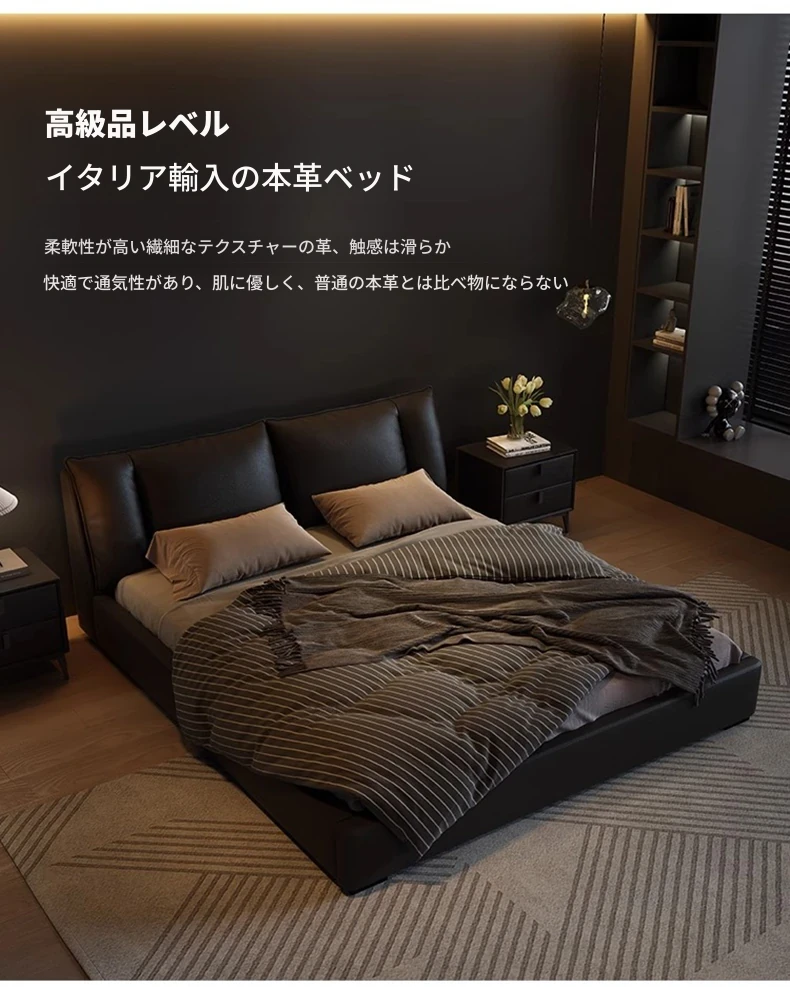 【エクスクルーシブモデル】本革ベッド・スチールウッドフレーム+9ゾーン天然ラテックスマットレス 【エクスクルーシブモデル】本革ベッド・スチールウッドフレーム+9ゾーン天然ラテックスマットレス