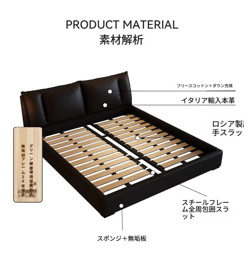 【エクスクルーシブモデル】本革ベッド・スチールウッドフレーム+3E環境保護ココナッツマットレス 【エクスクルーシブモデル】本革ベッド・スチールウッドフレーム+3E環境保護ココナッツマットレス