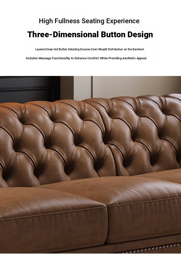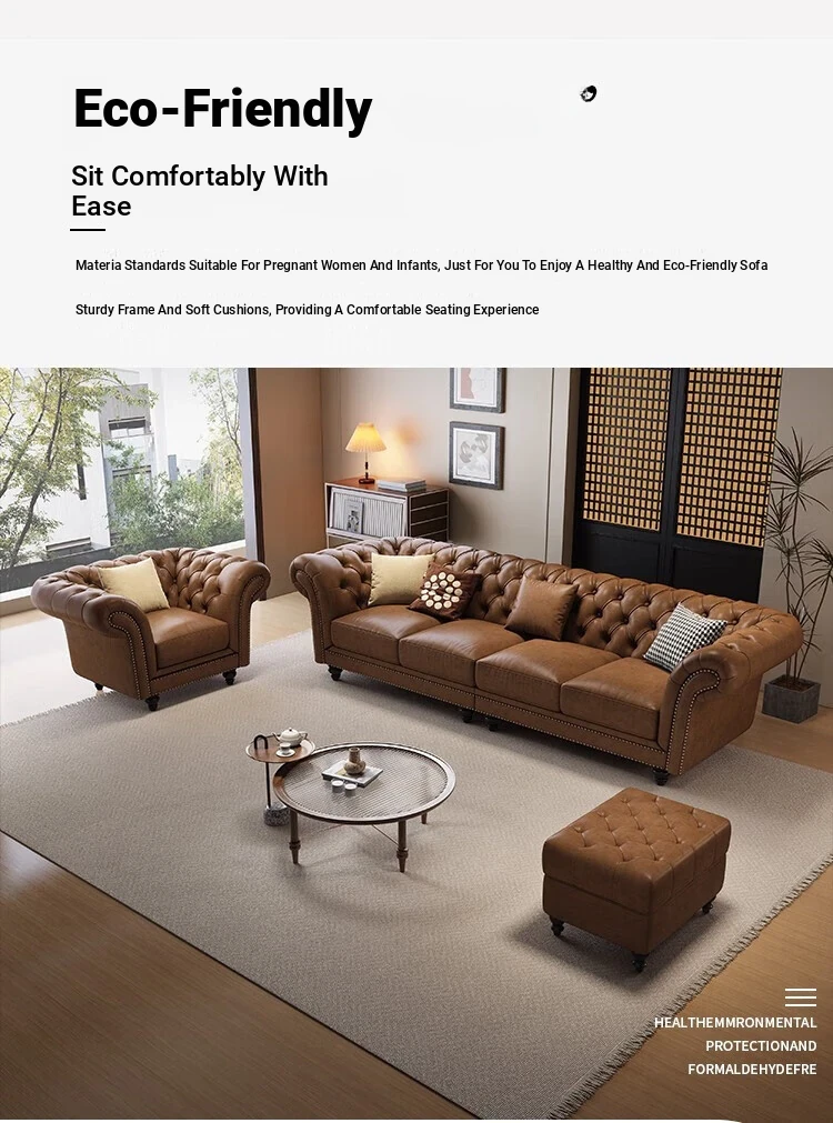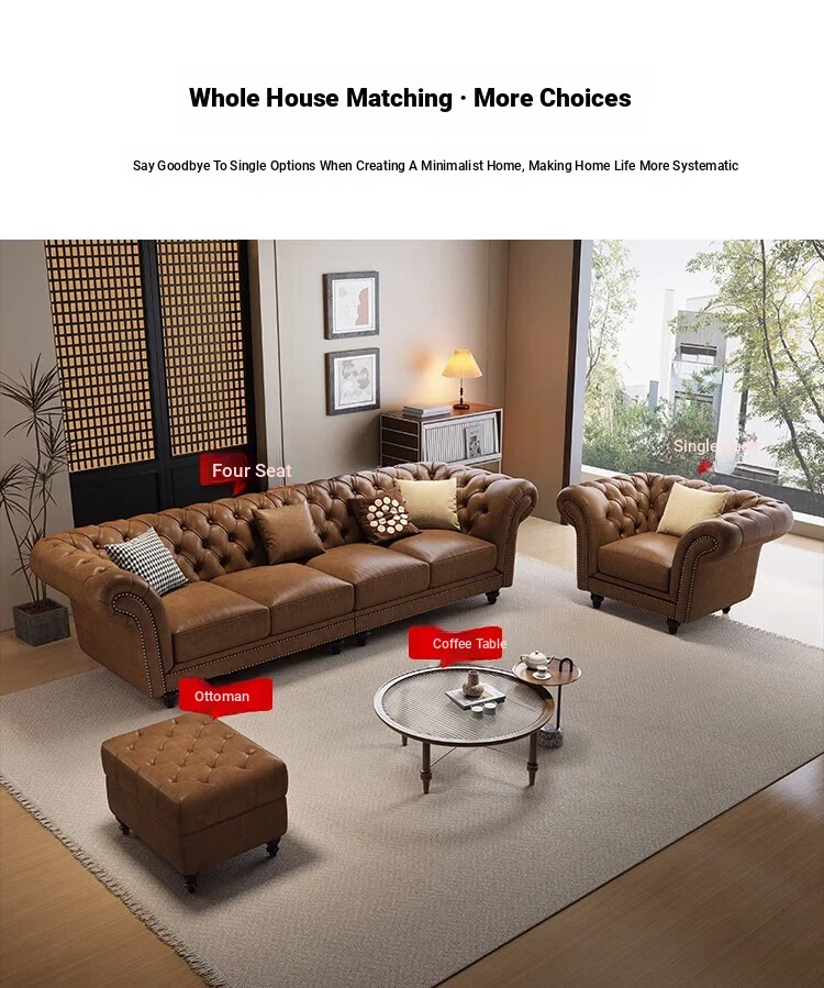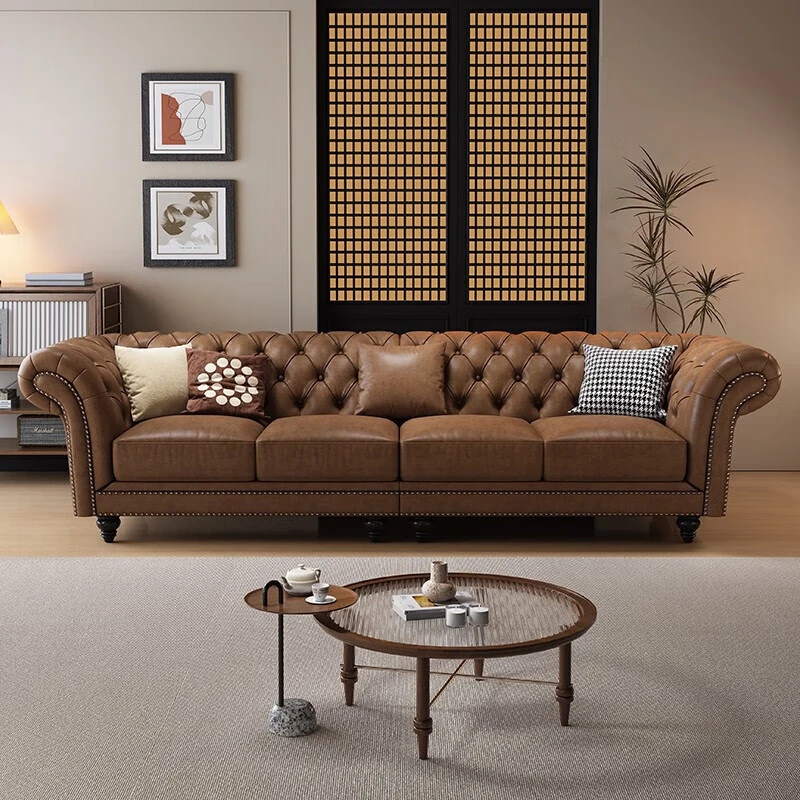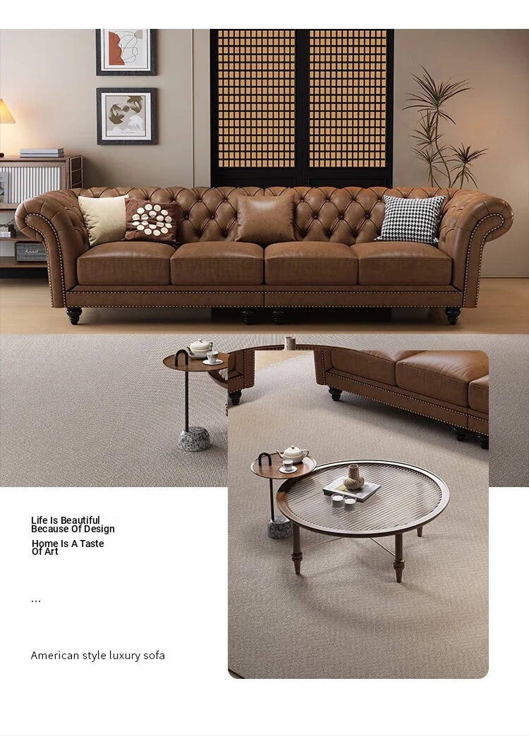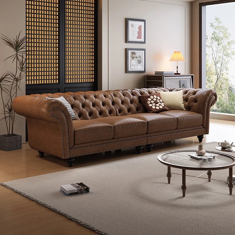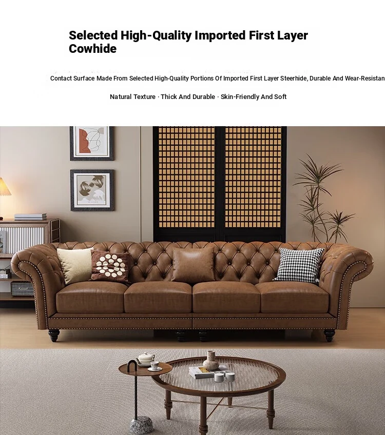 Elegant American-Style Leather Sofa Set for Small Living Rooms – Premium Top Grain Leather, Vintage Design, Perfect for Modern Luxury Living