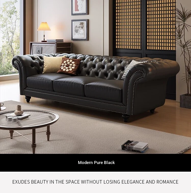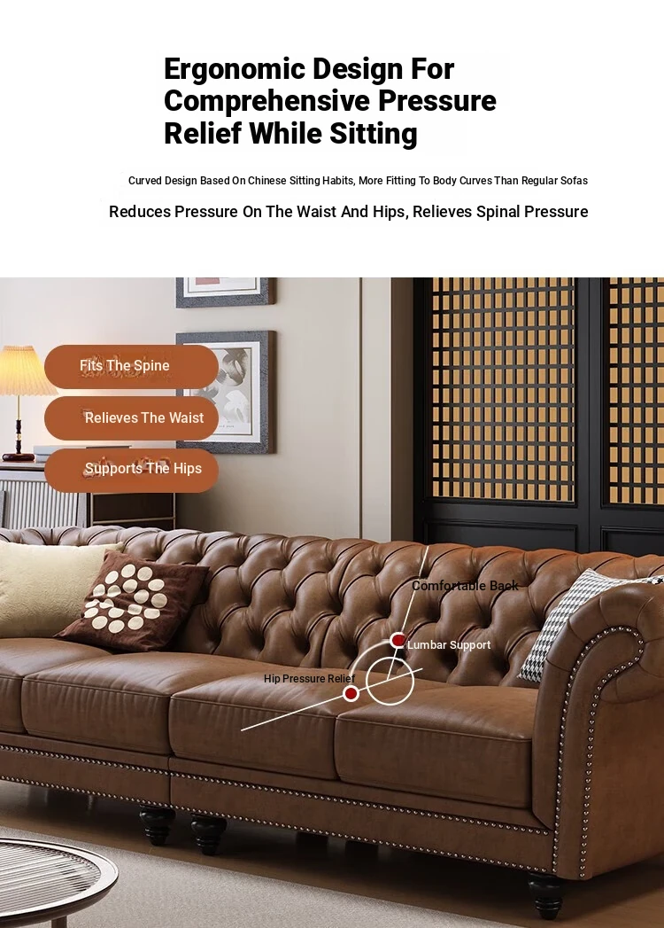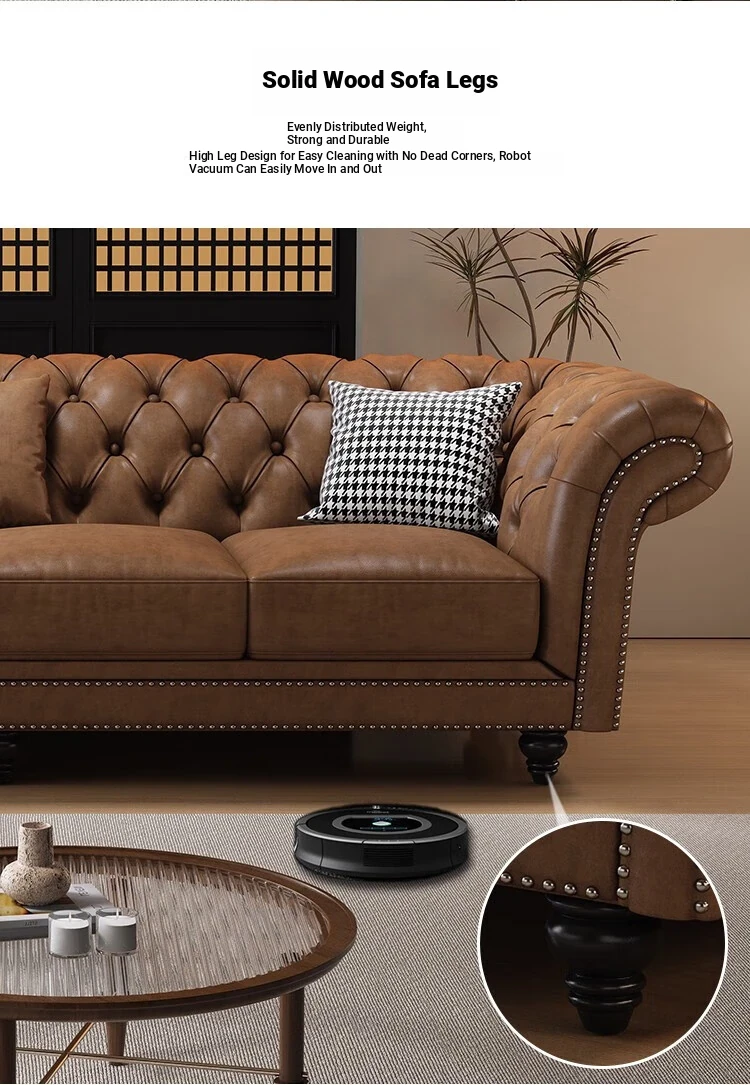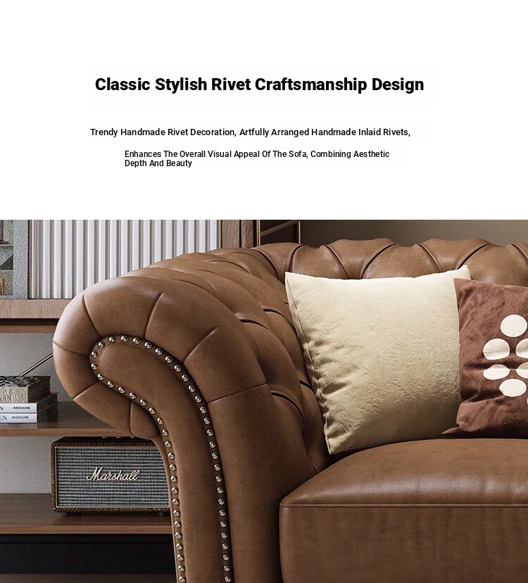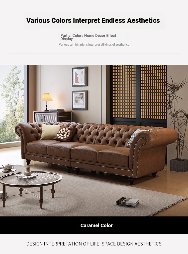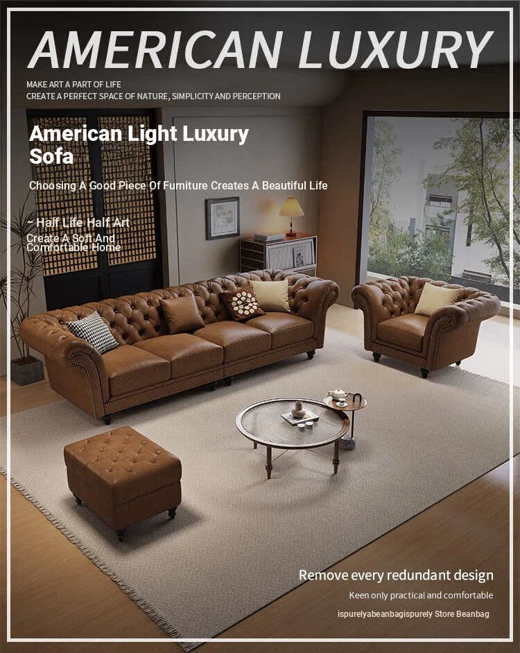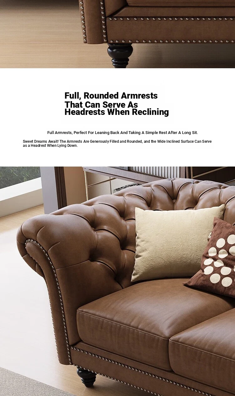 Elegant American-Style Leather Sofa Set for Small Living Rooms – Premium Top Grain Leather, Vintage Design, Perfect for Modern Luxury Living