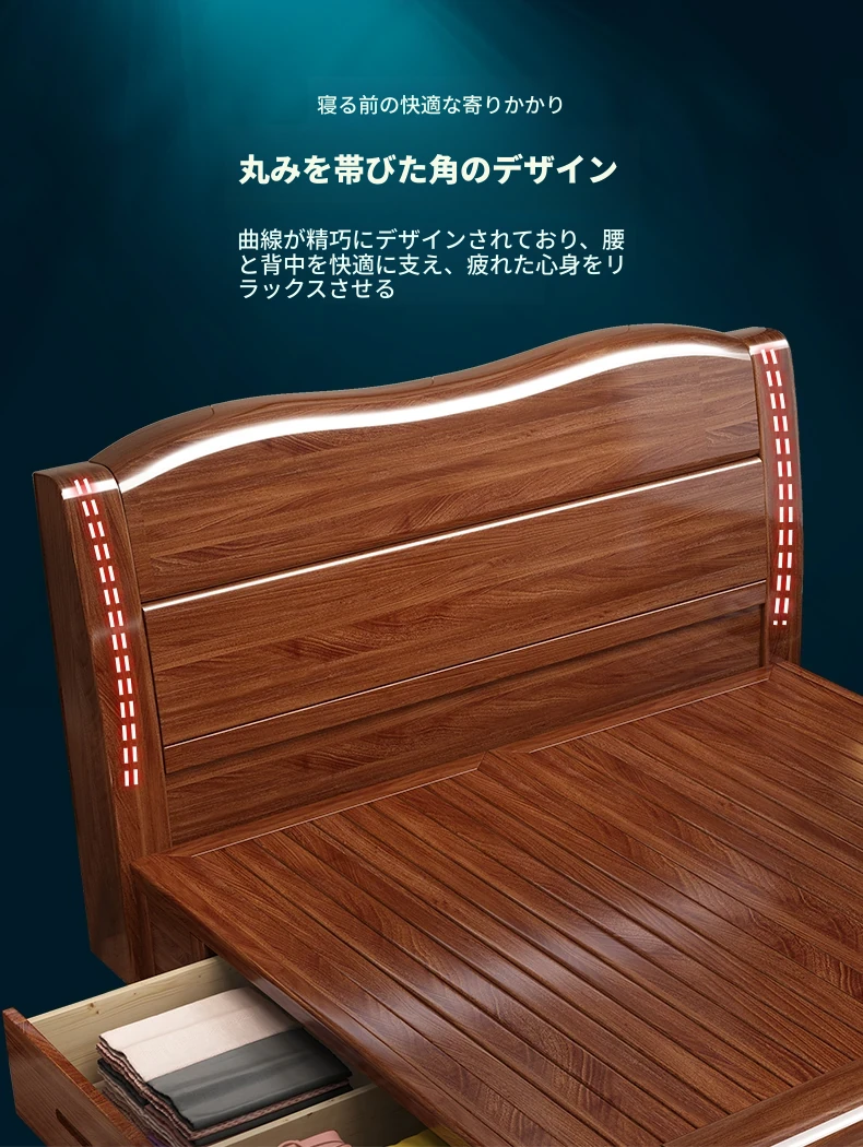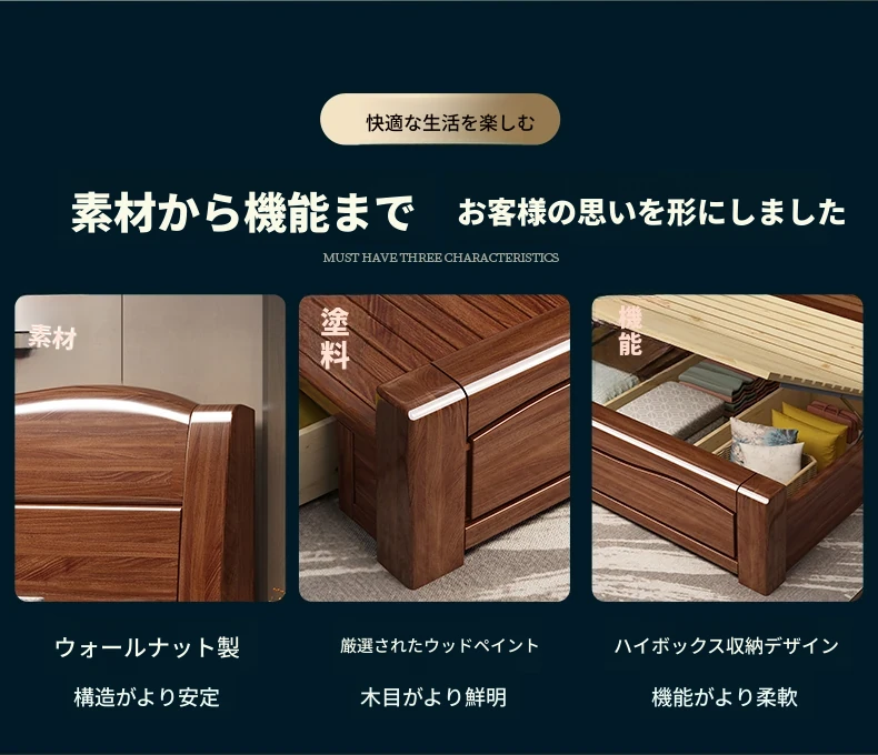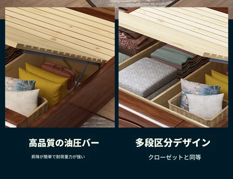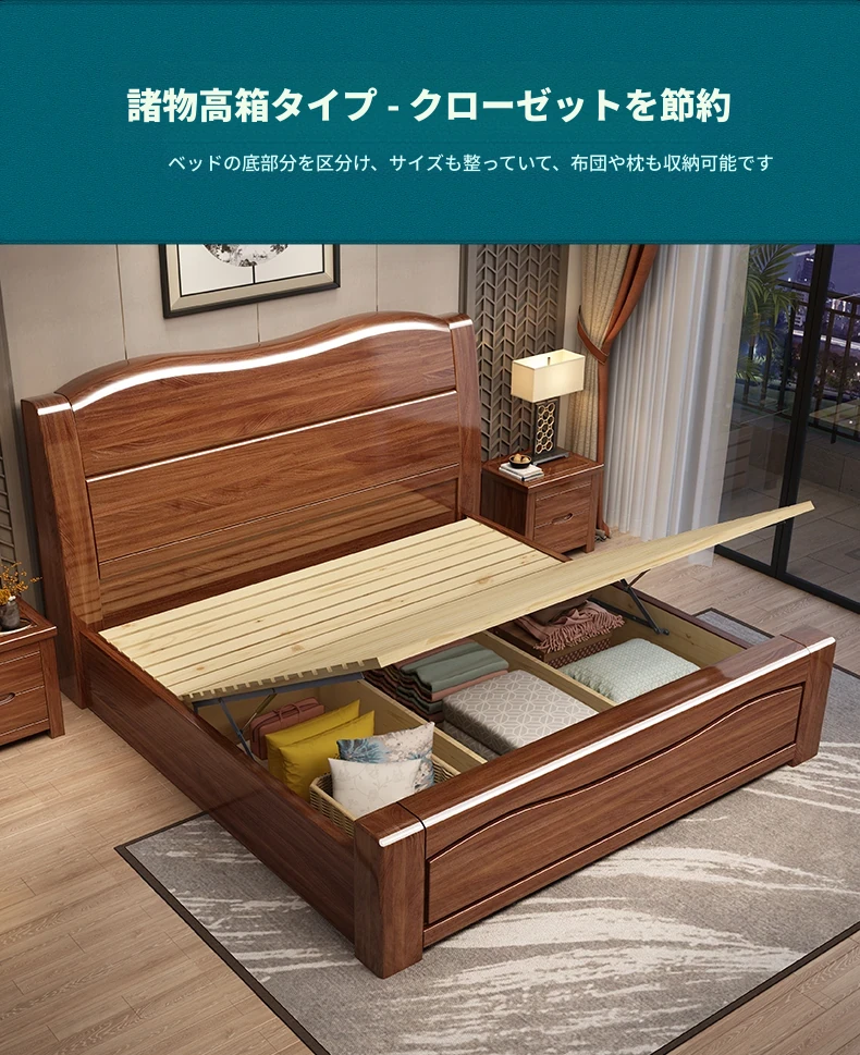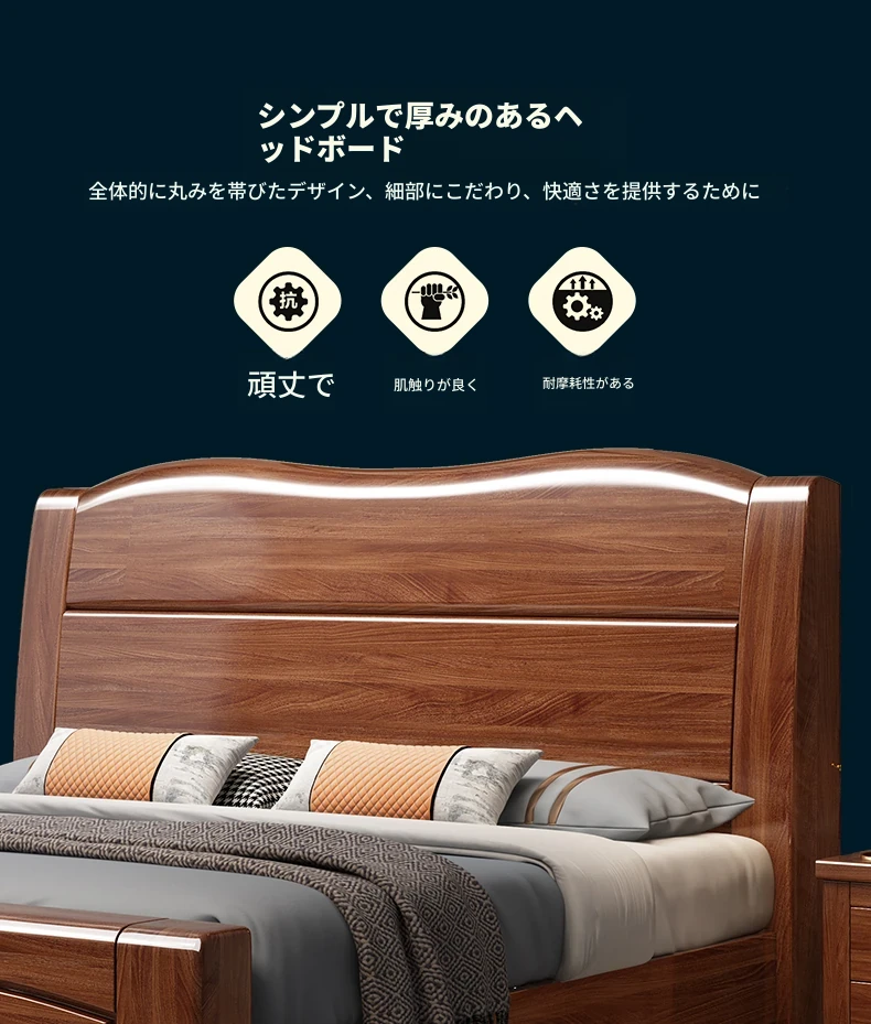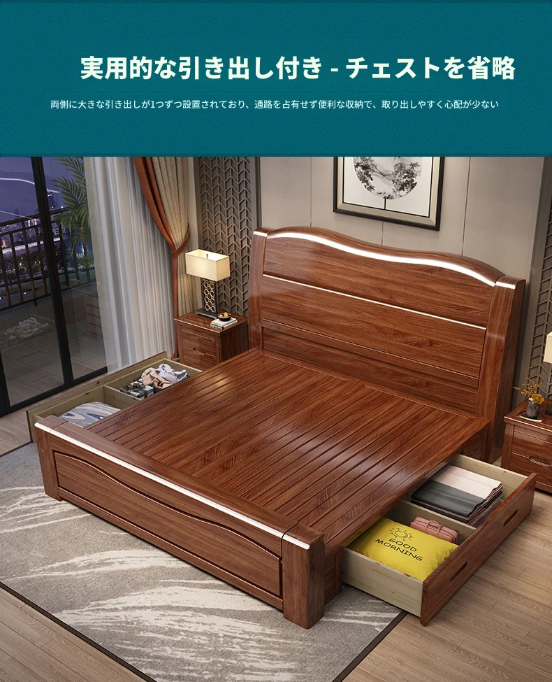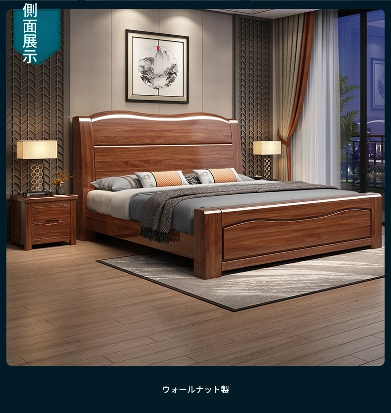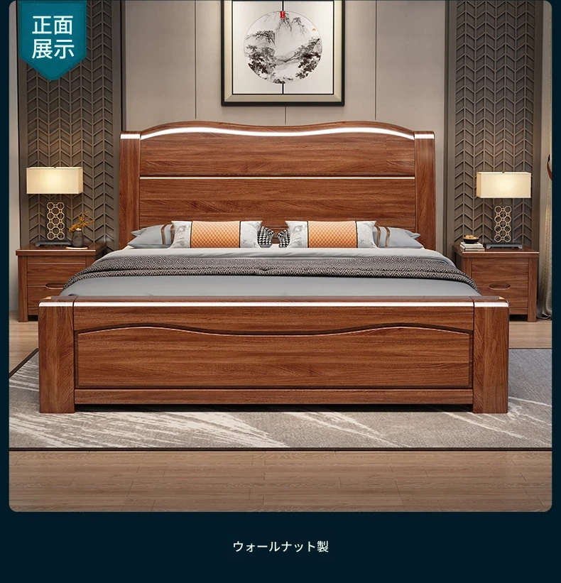 十虎の中式ダブルベッド 高収納 胡桃木製|スタイリッシュで機能的、心地よい寝室を実現!