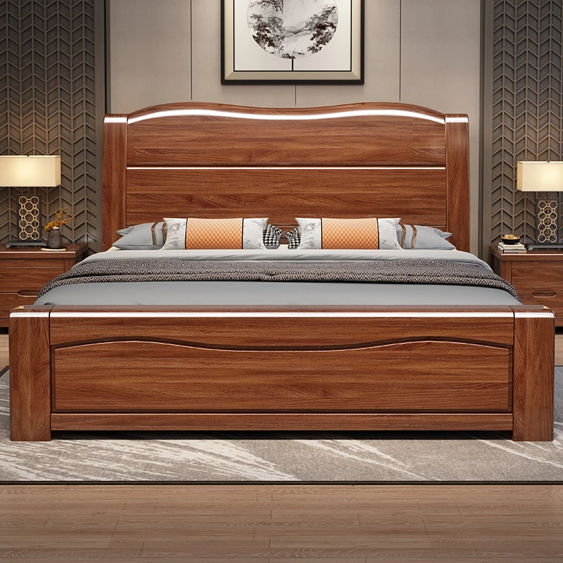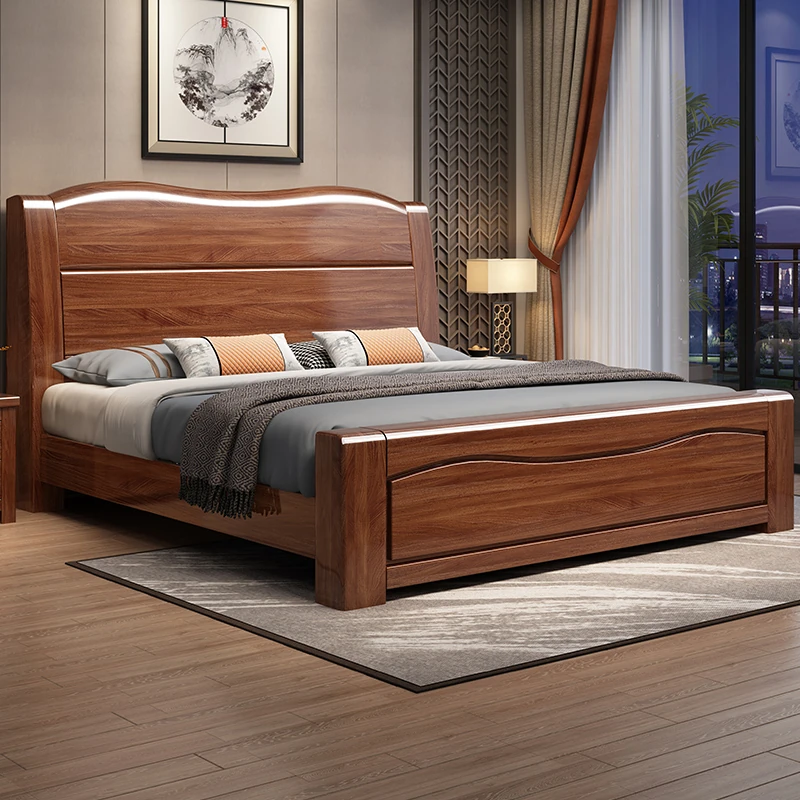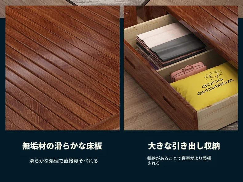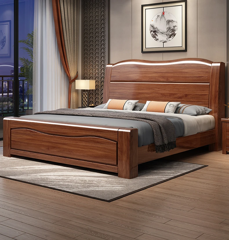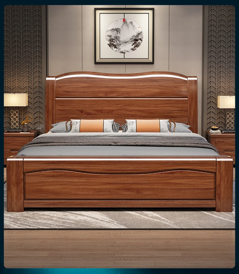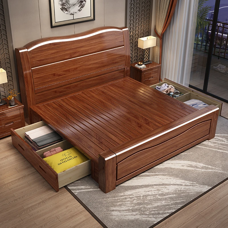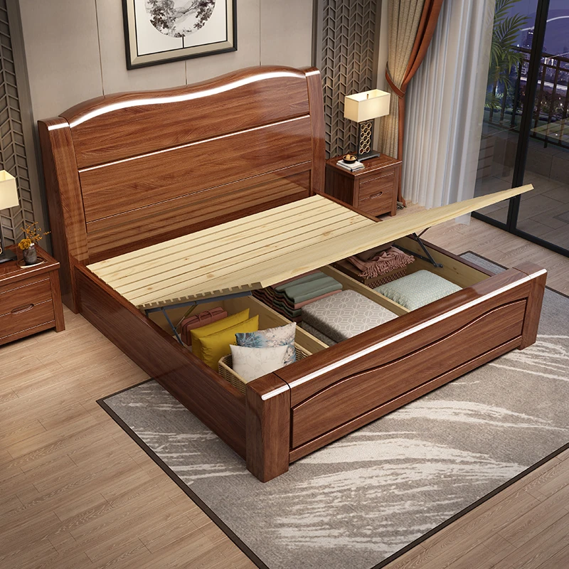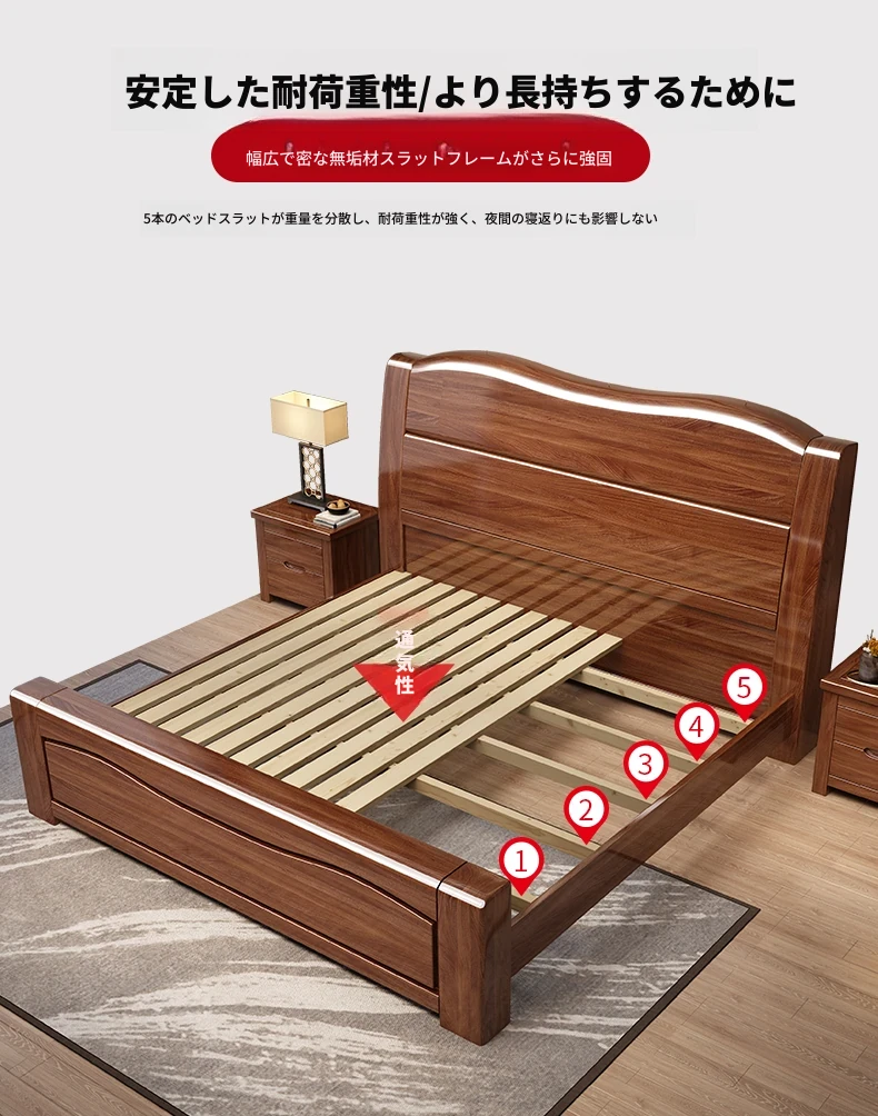 十虎の中式ダブルベッド 高収納 胡桃木製|スタイリッシュで機能的、心地よい寝室を実現!