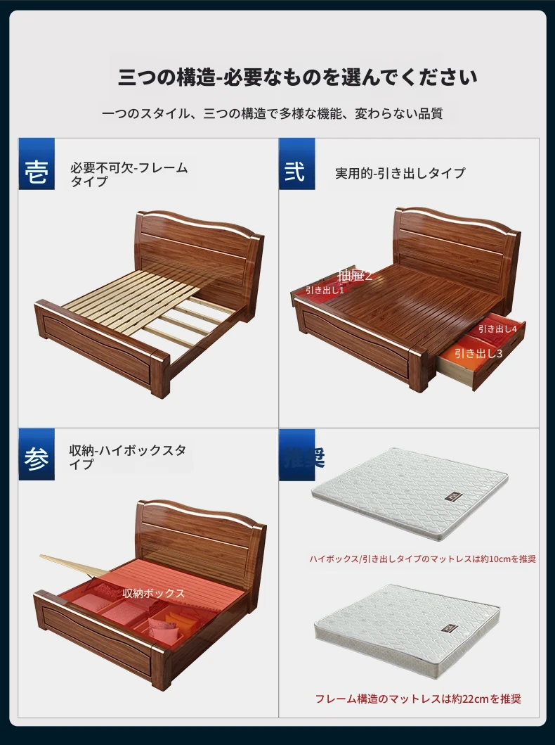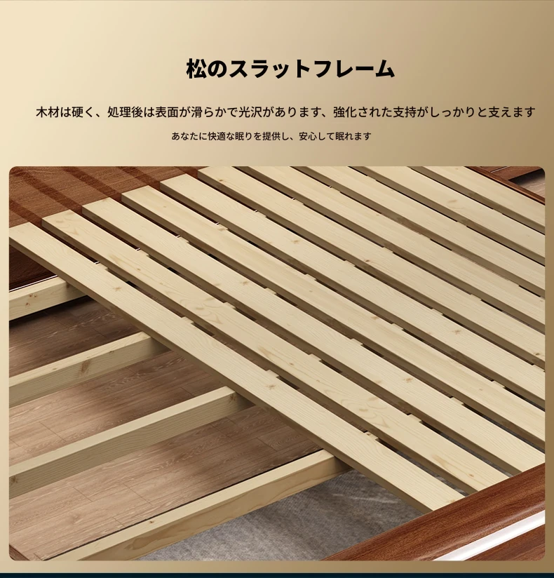クルミの無垢材ベッド+5Dスプリングラテックスマットレス+ナイトスタンド*1