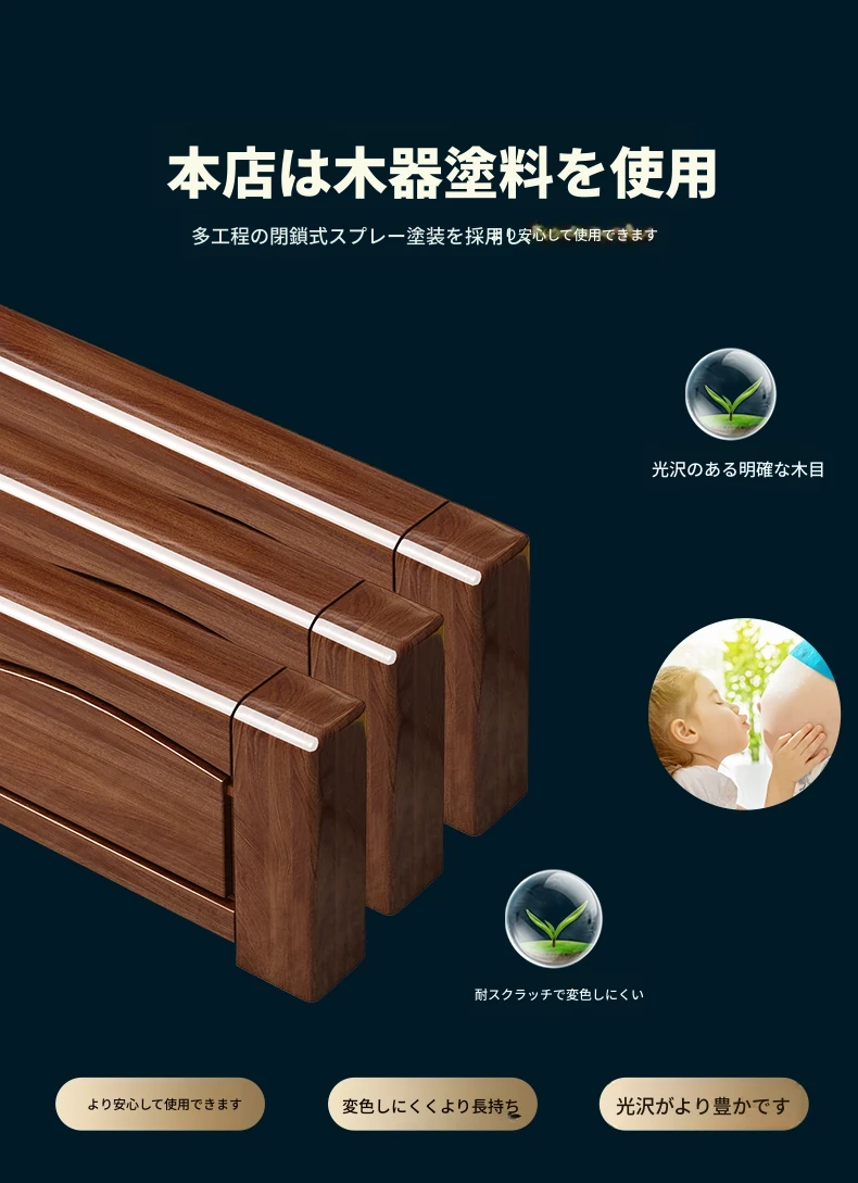 クルミの無垢材ベッド+3Eエコココナッツマットレス+ナイトスタンド*1