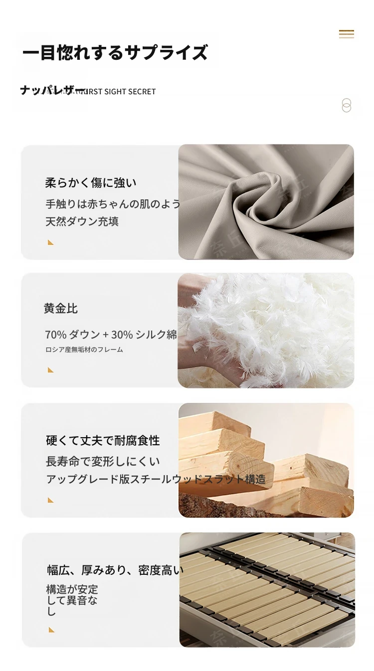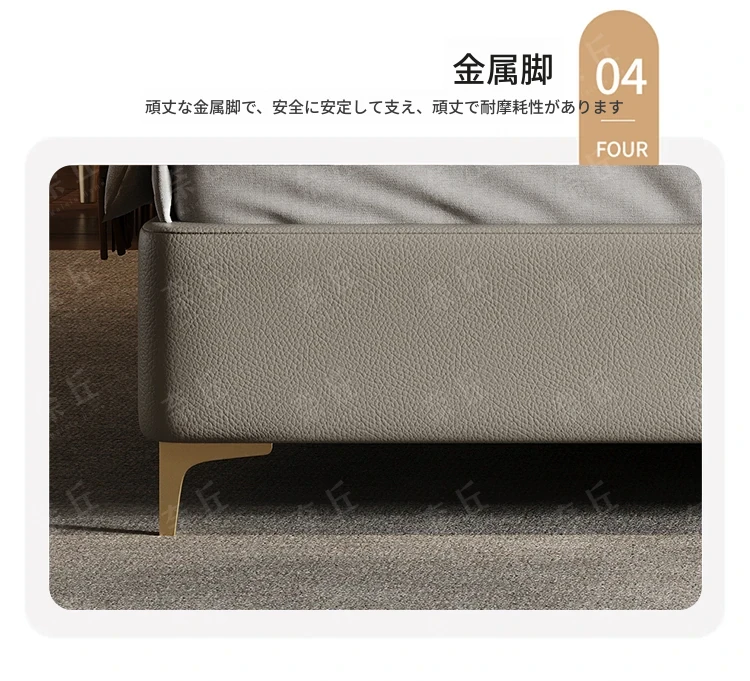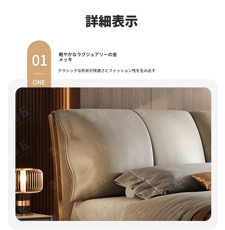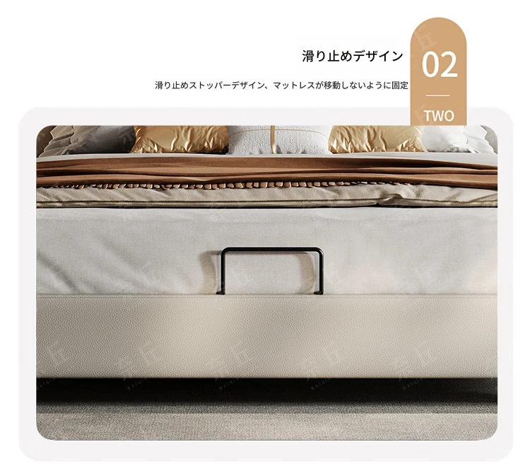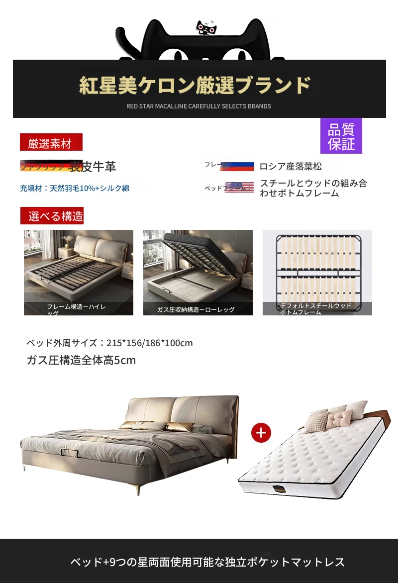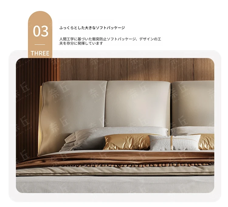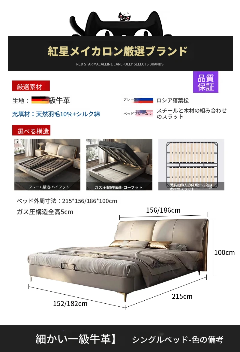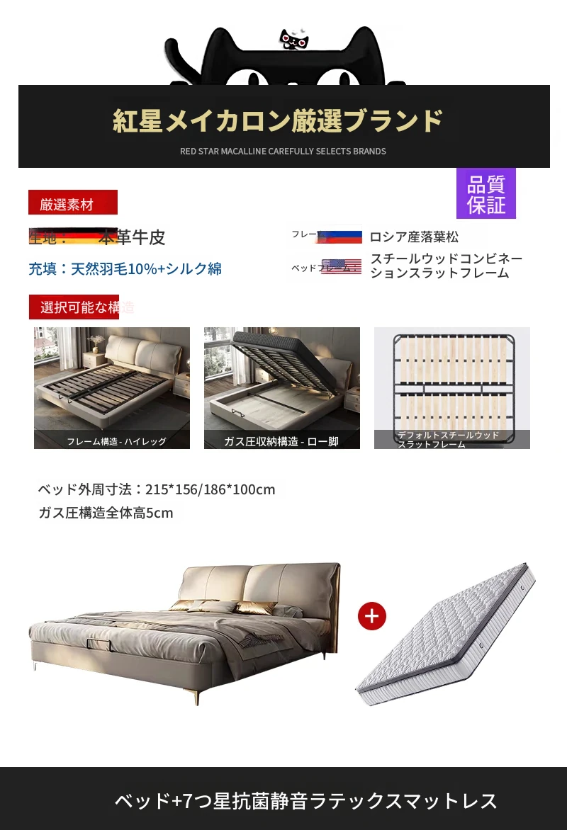 ナイキュー新作ダウンソフトパッケージ本革ベッド - 主寝室にぴったりなミニマリズムデザイン!象耳スタイルのラグジュアリーで高箱収納ベッドで、贅沢なスペースを実現!