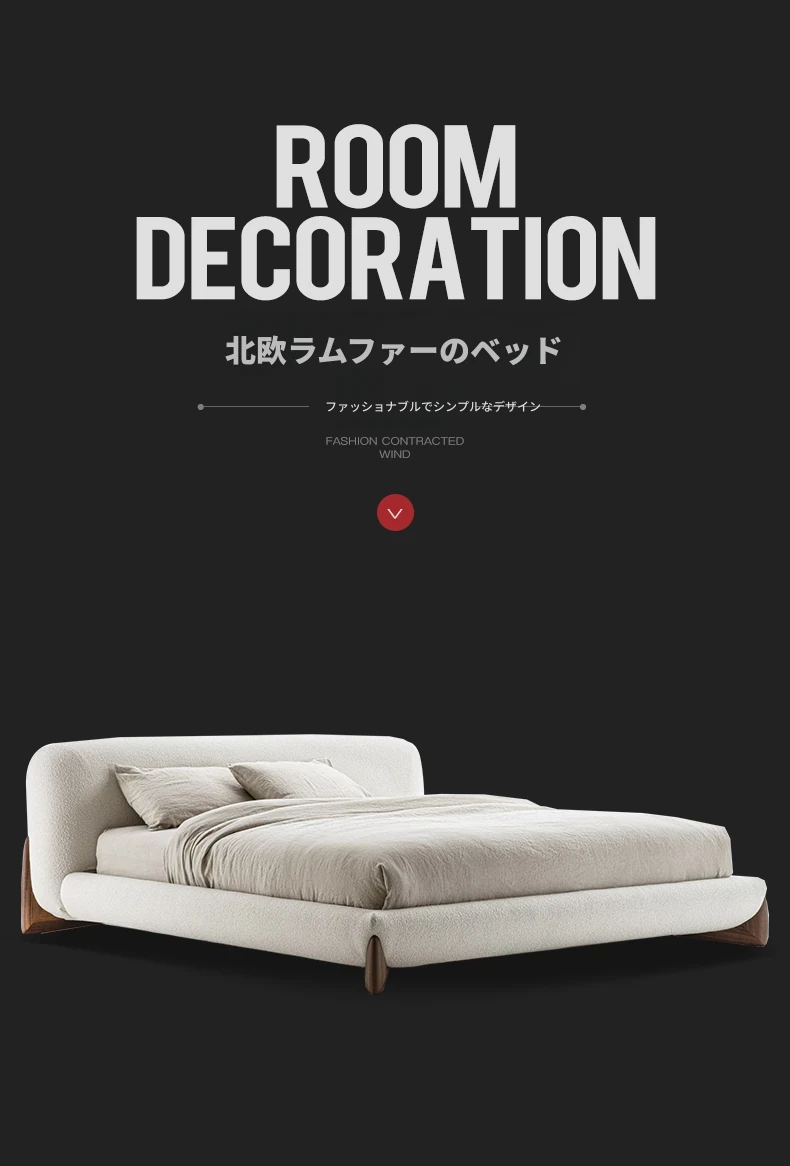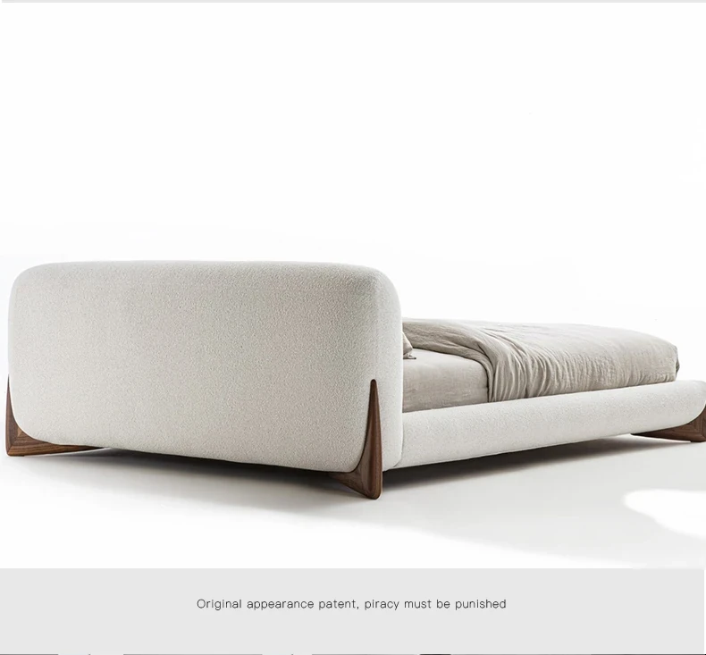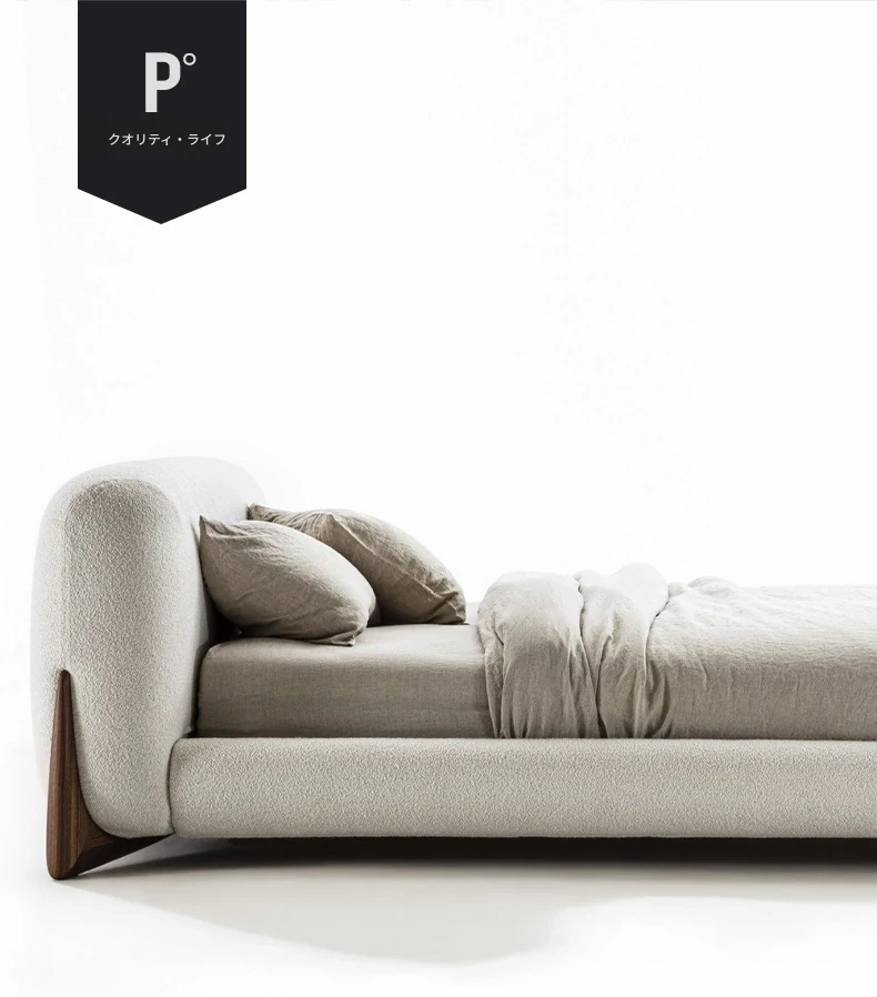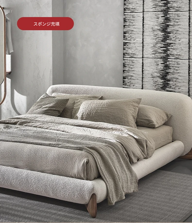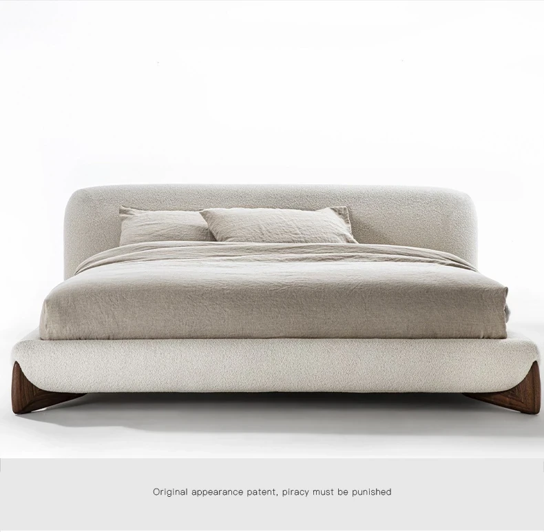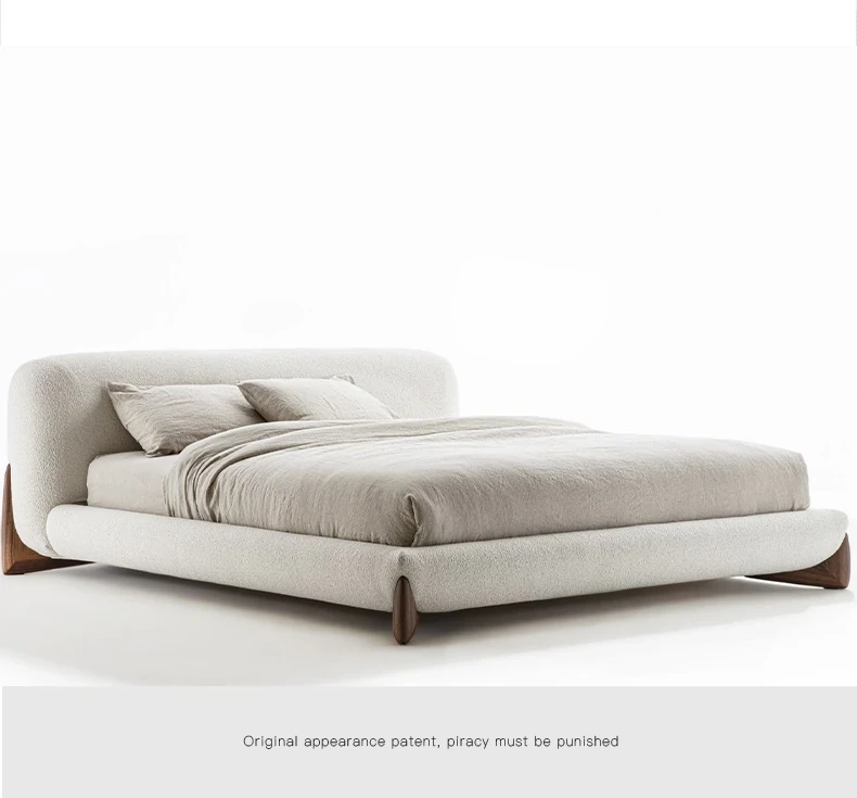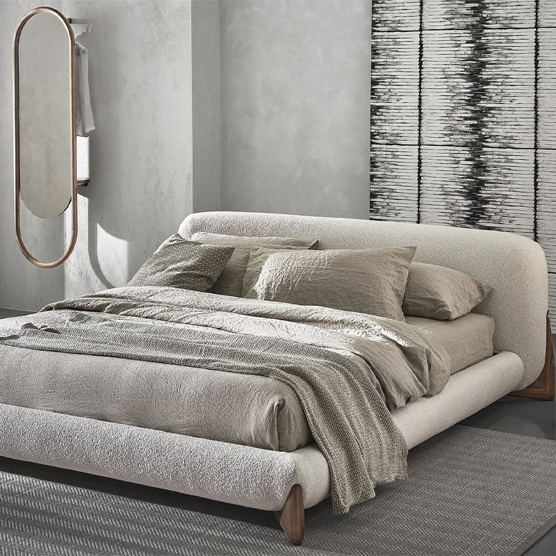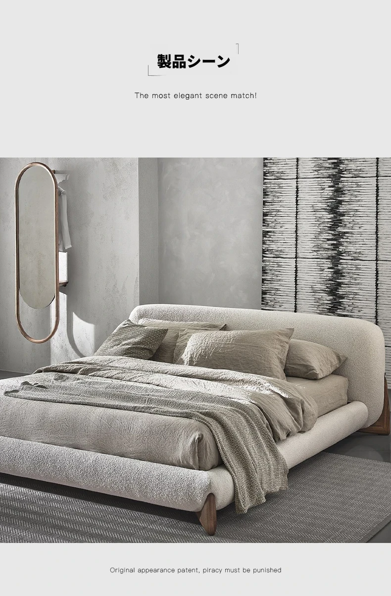 オスワン和風北欧わびさびスタイルの布製ベッド - 主寝室用ダブルベッド、イタリアンミニマリズムの宿泊施設向け真皮ベッド。シンプルな美しさで心地よい眠りをお届けします。
