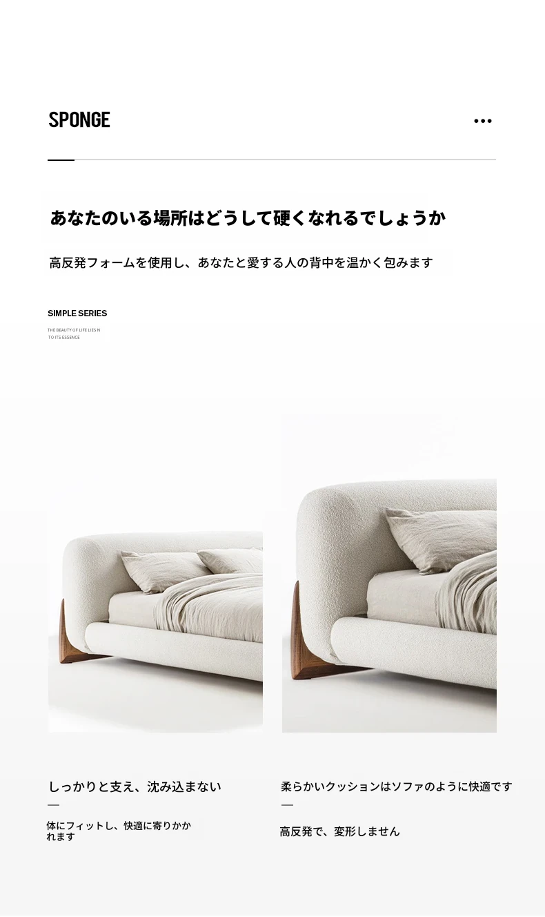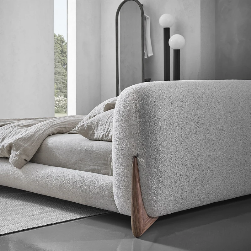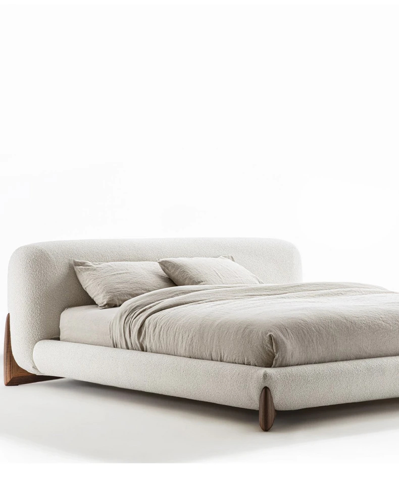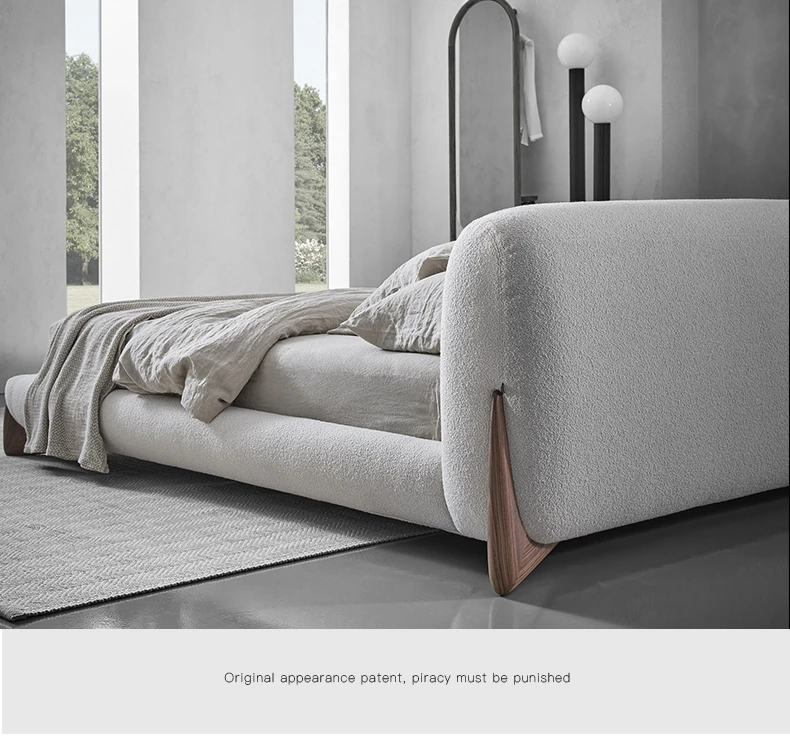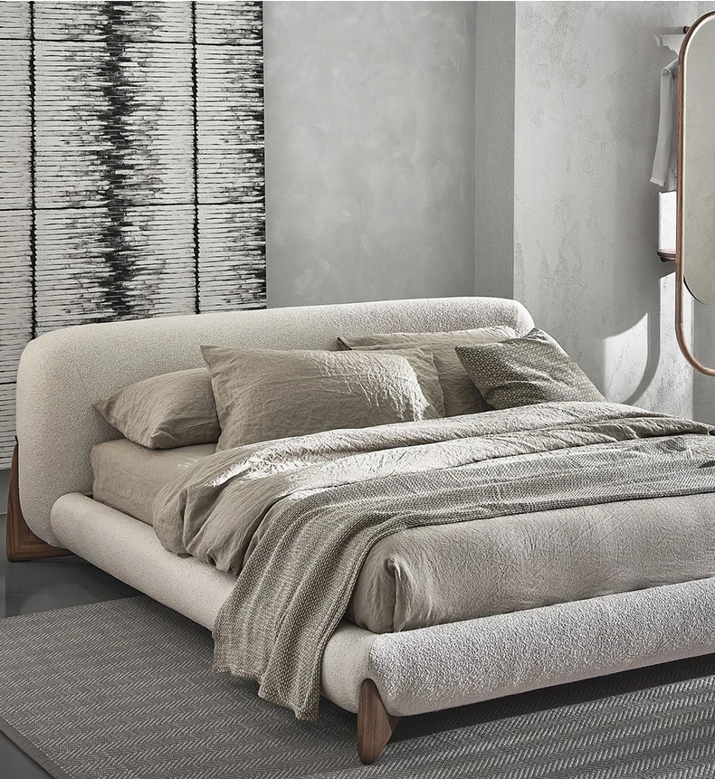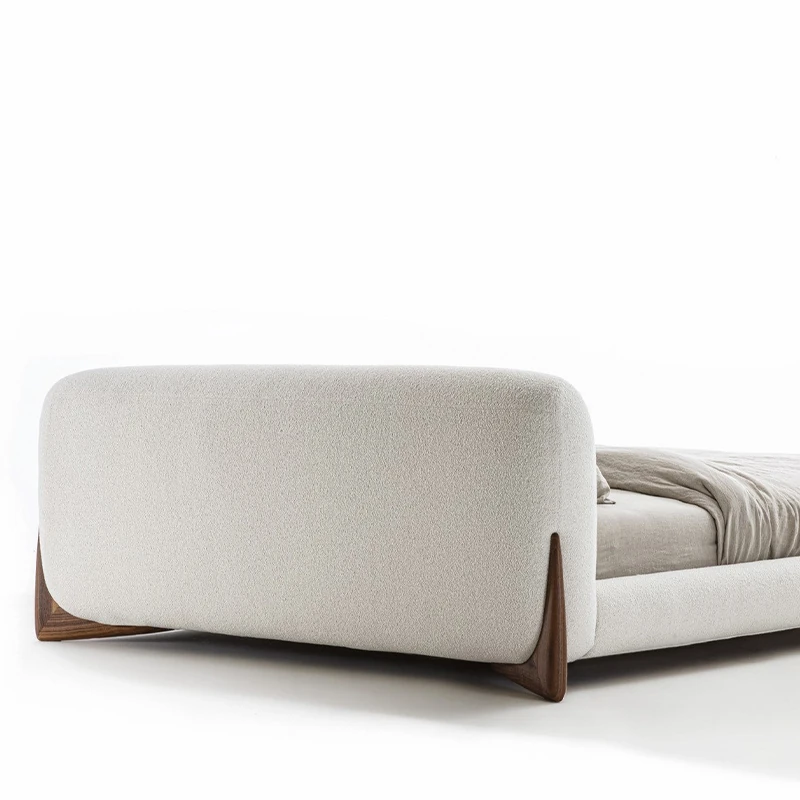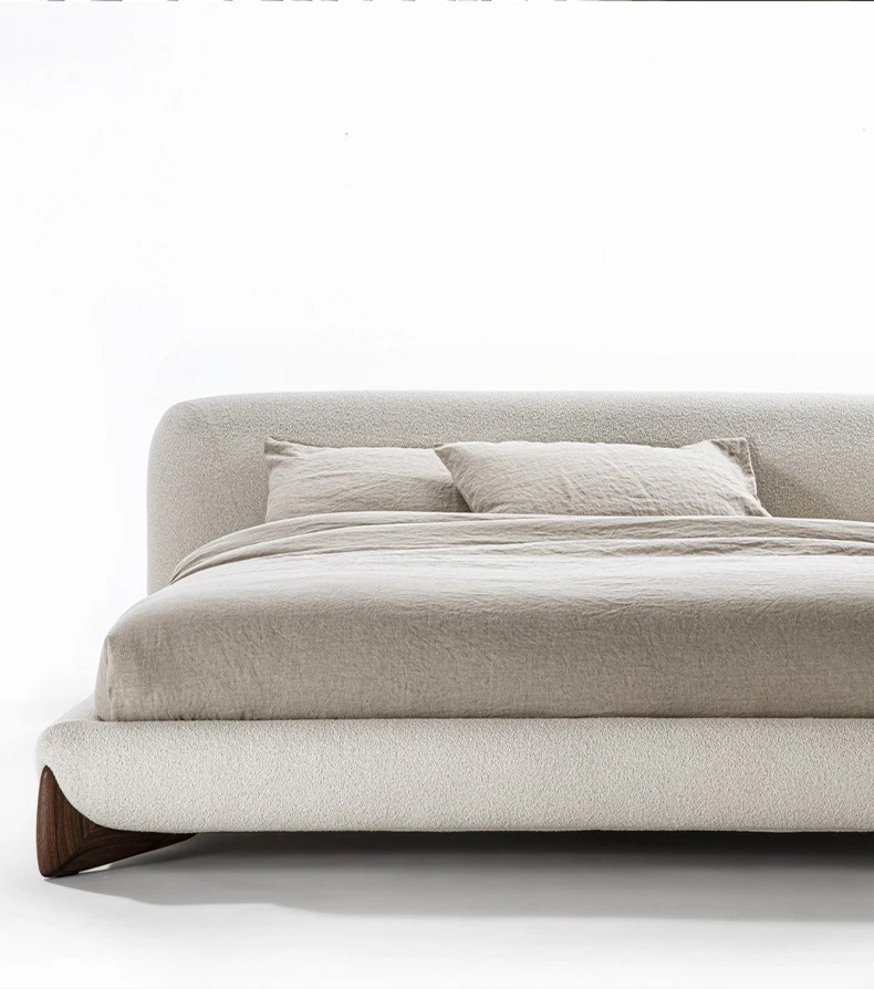 オスワン和風北欧わびさびスタイルの布製ベッド - 主寝室用ダブルベッド、イタリアンミニマリズムの宿泊施設向け真皮ベッド。シンプルな美しさで心地よい眠りをお届けします。