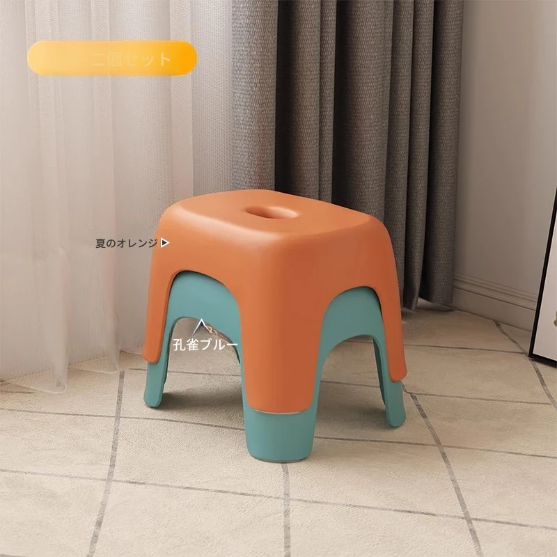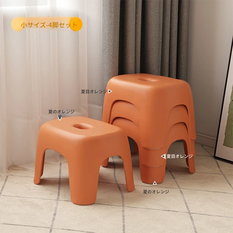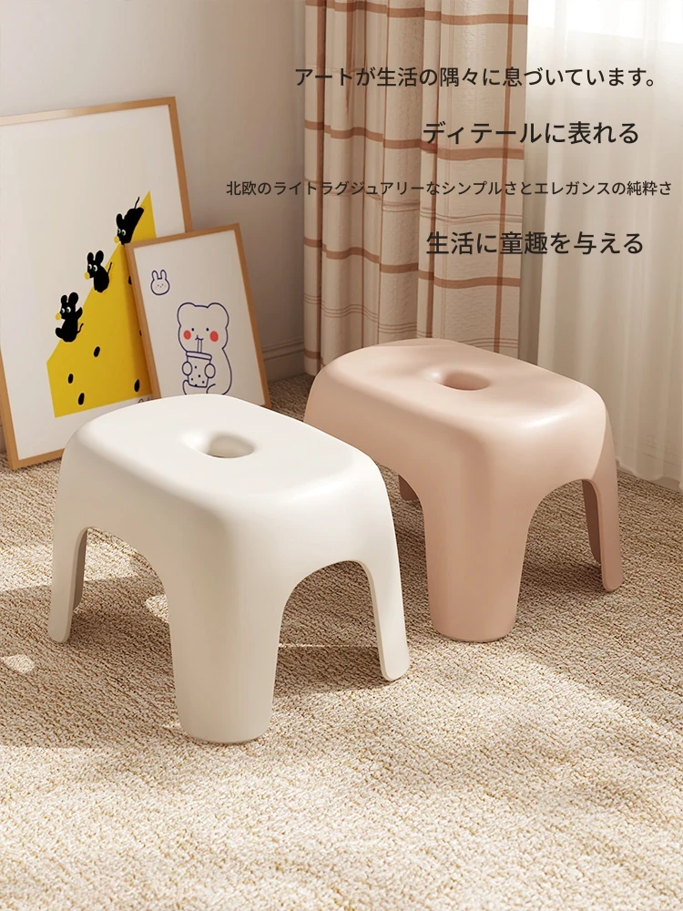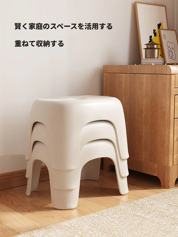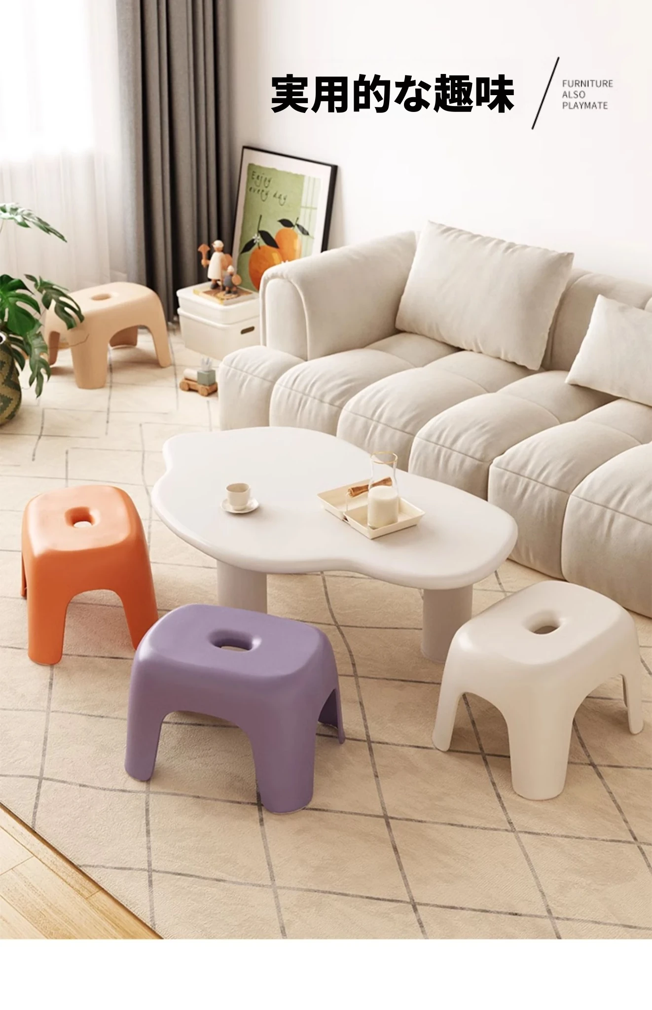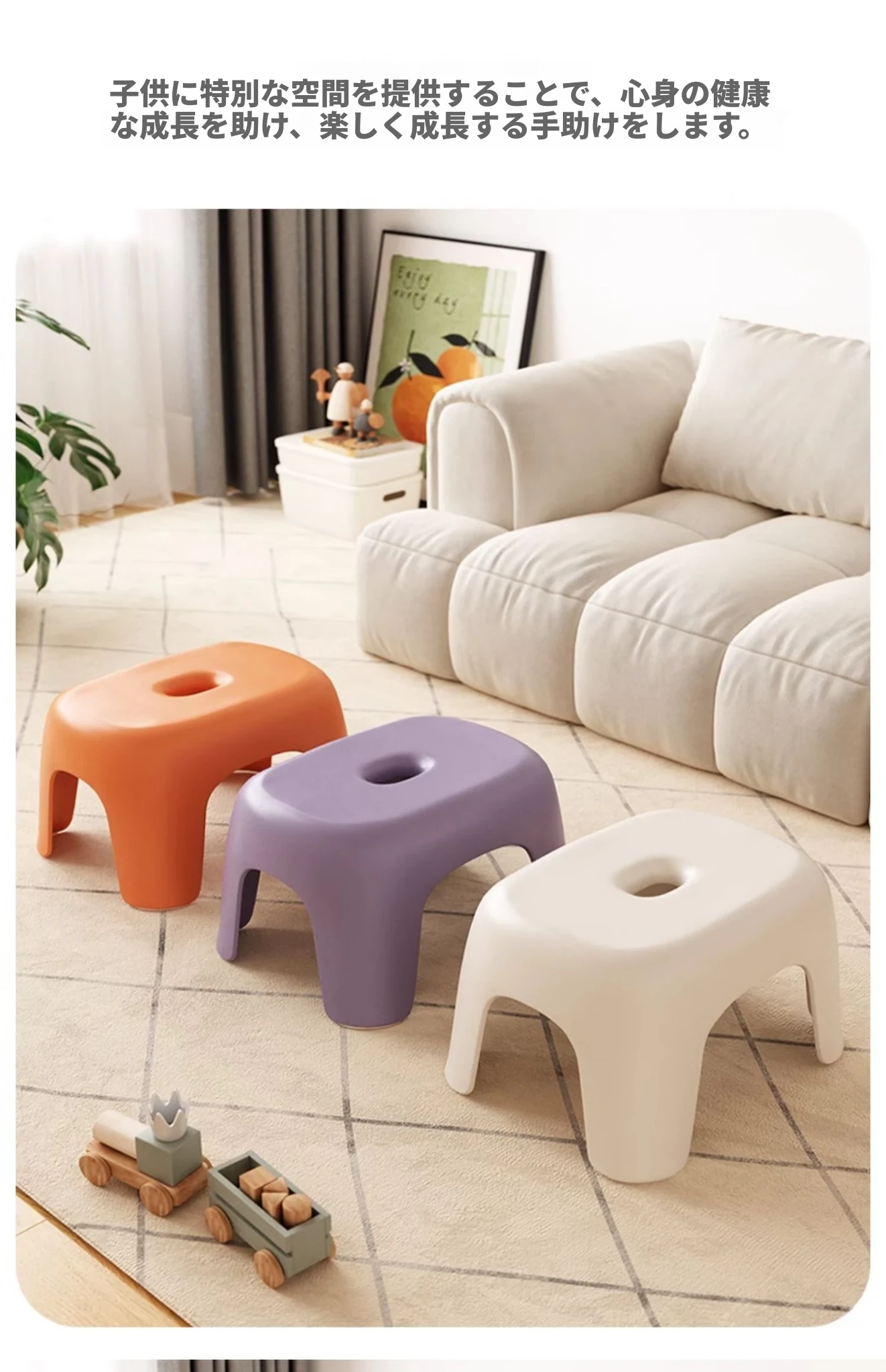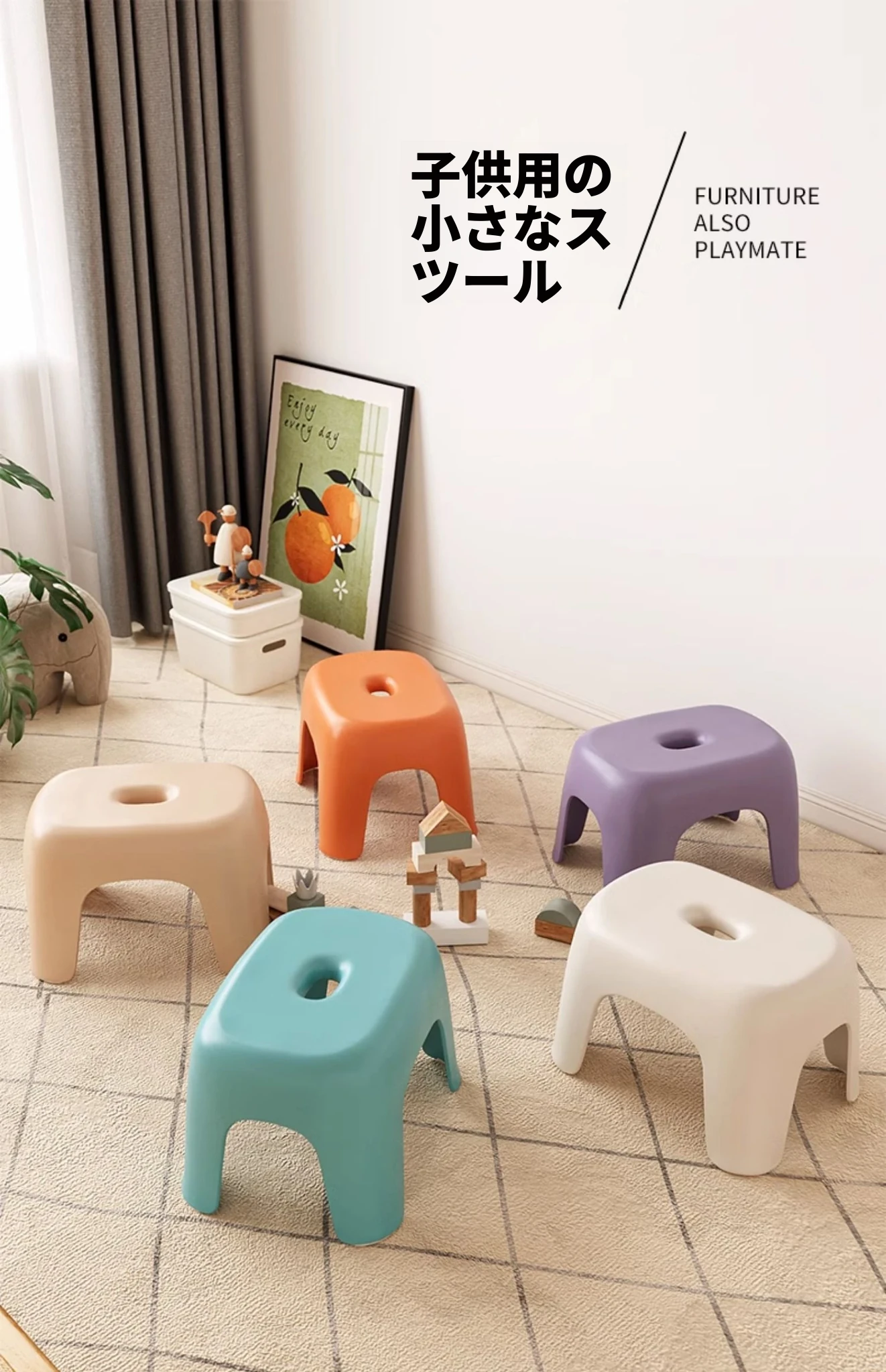 重ねられる小さな椅子|家庭用・子供用・ソファにぴったり|加厚デザインで安心感アップ|シンプルでスタイリッシュなプラスチック製ラウンドスツール