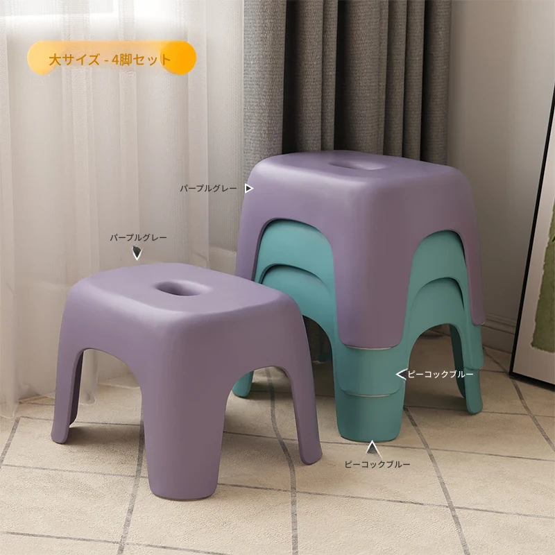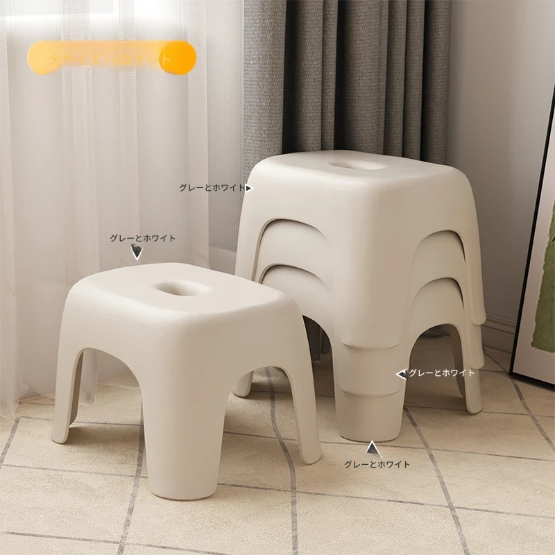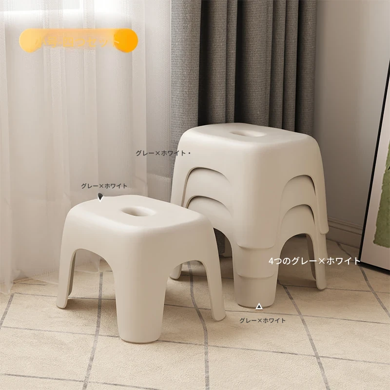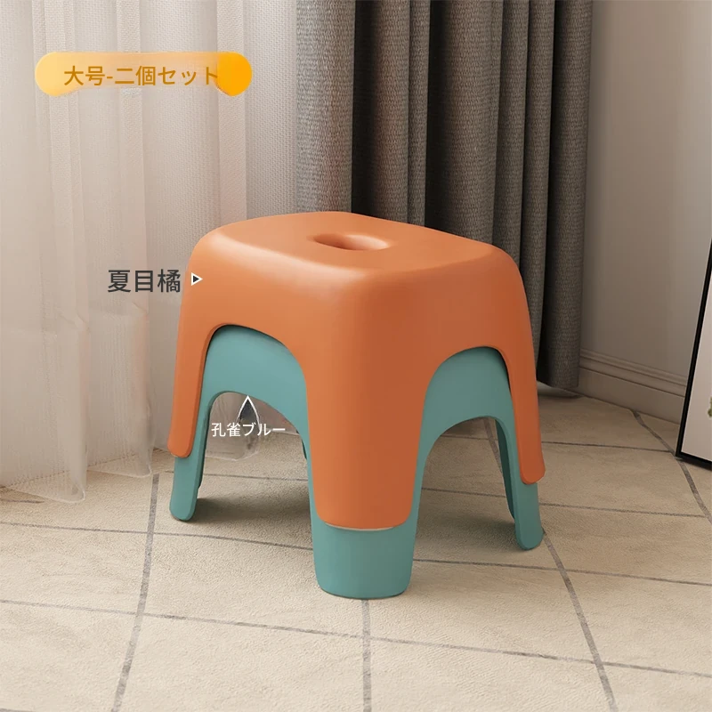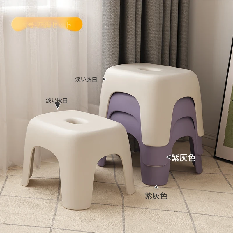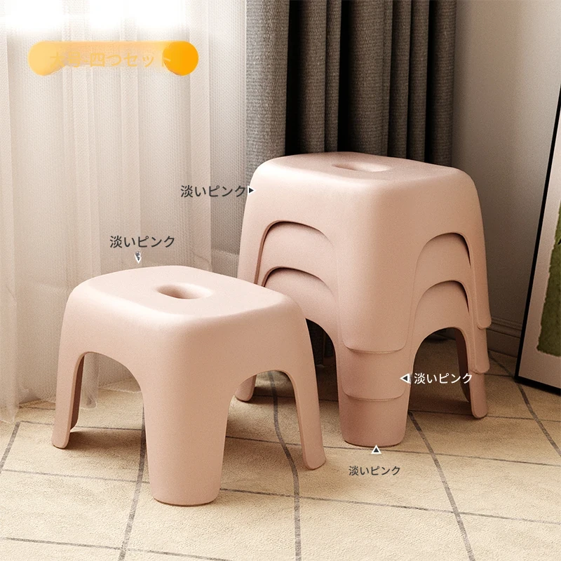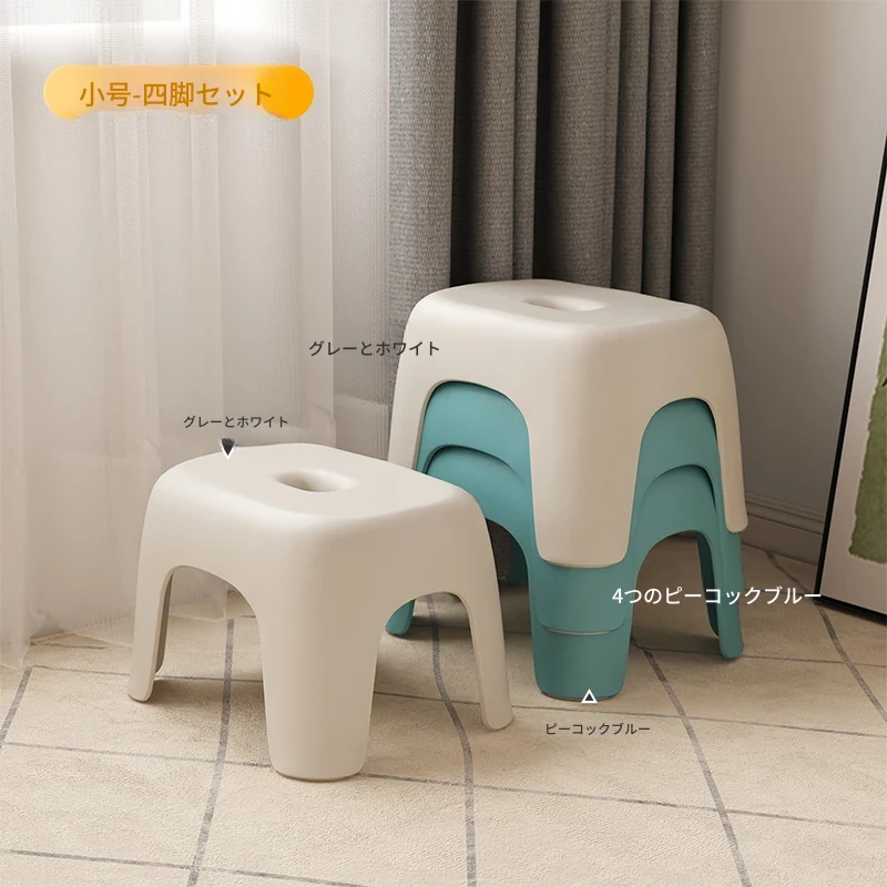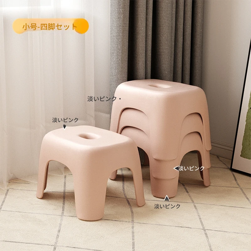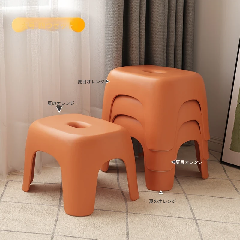 重ねられる小さな椅子|家庭用・子供用・ソファにぴったり|加厚デザインで安心感アップ|シンプルでスタイリッシュなプラスチック製ラウンドスツール