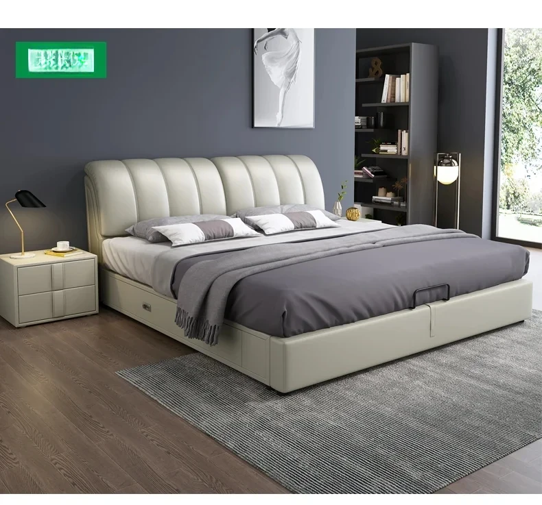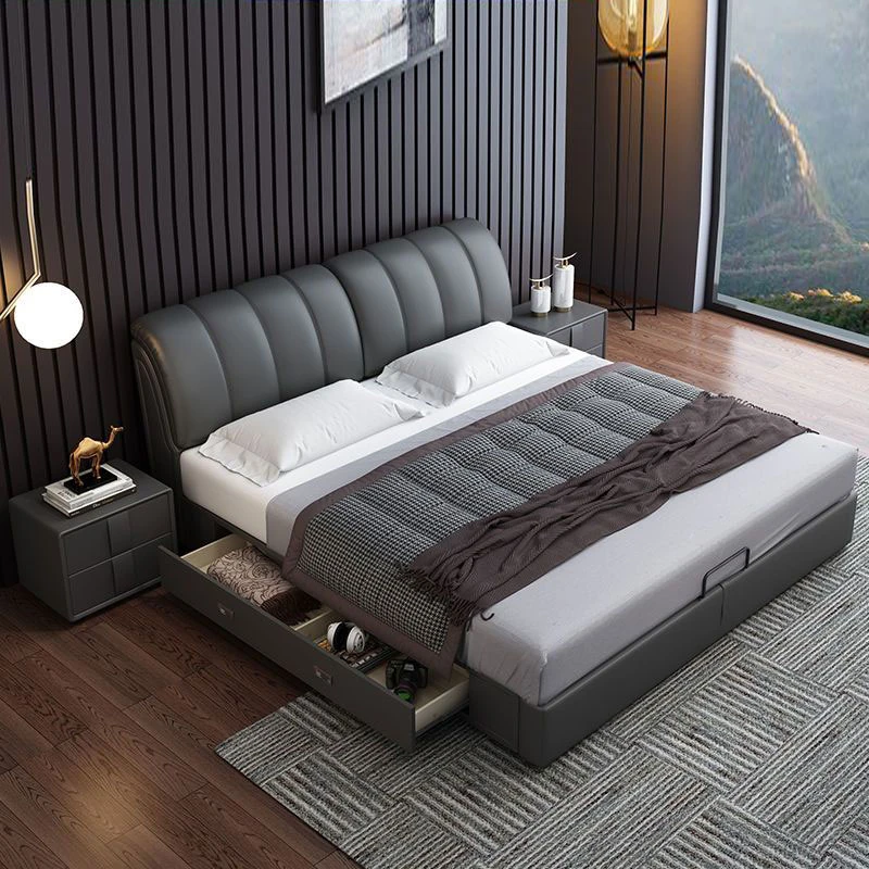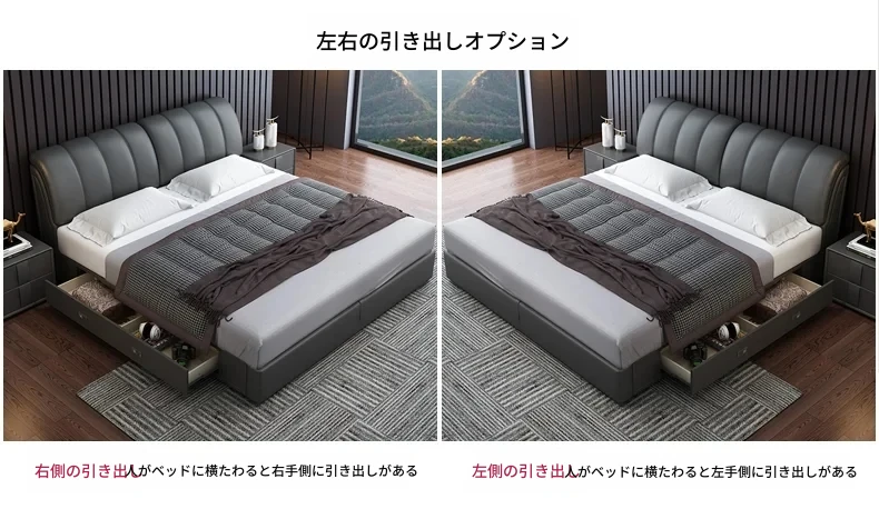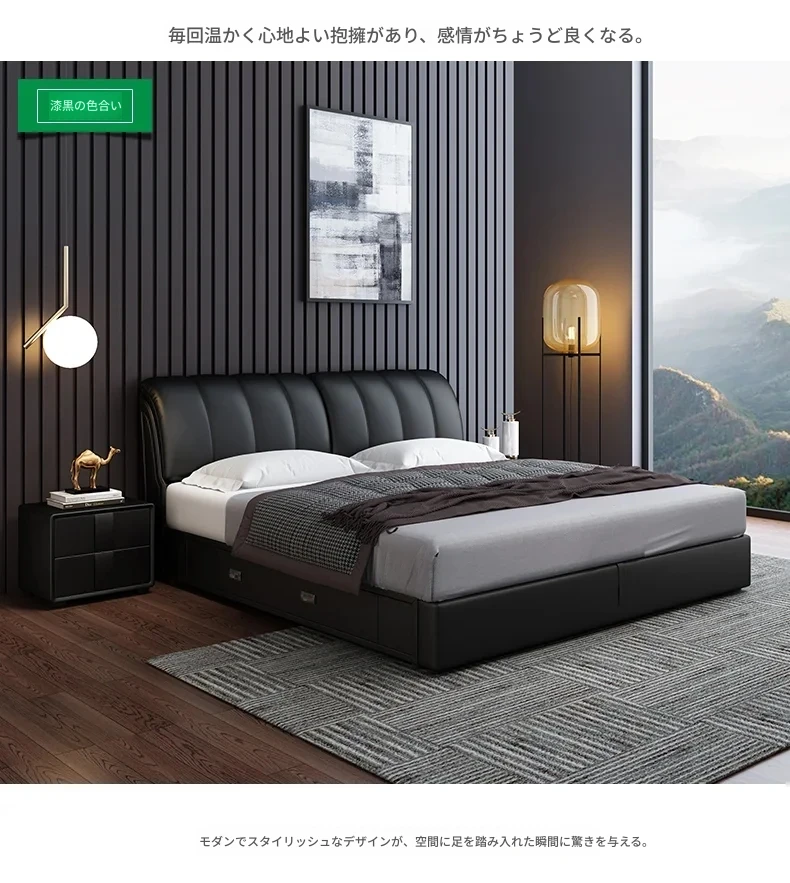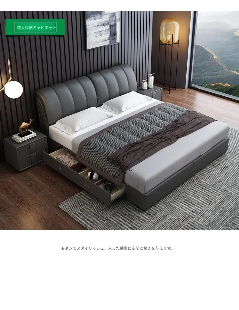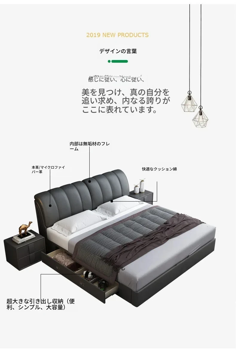 デザイン性と機能性を兼ね備えたモダンスタイルの本革ベッド | 1.8m収納付きマスターベッド | 欧風ダブルベッド | 1.5m婚礼ベッド | スタイリッシュな部屋作りをサポートします!