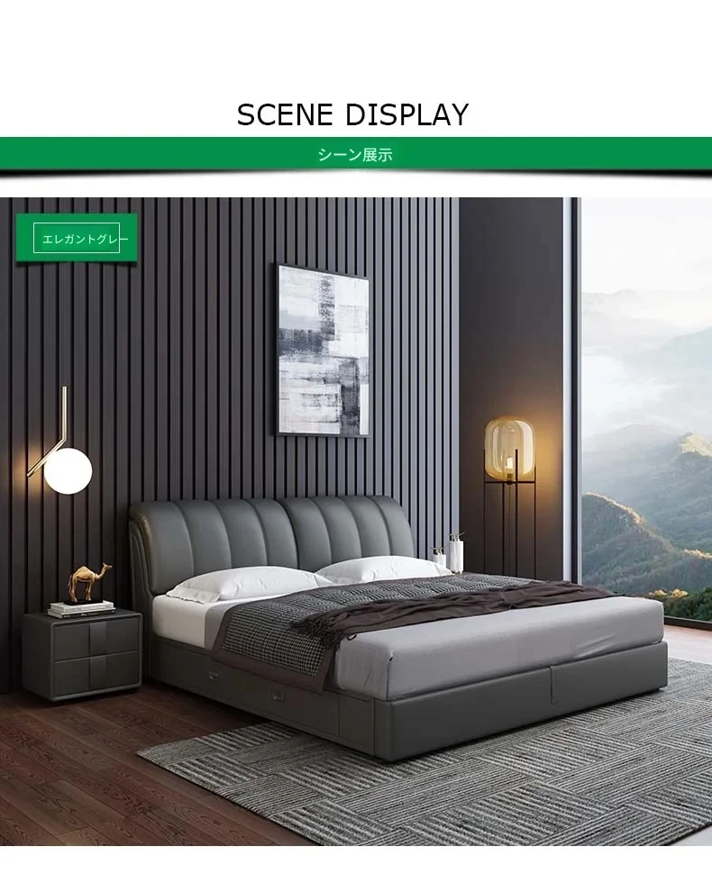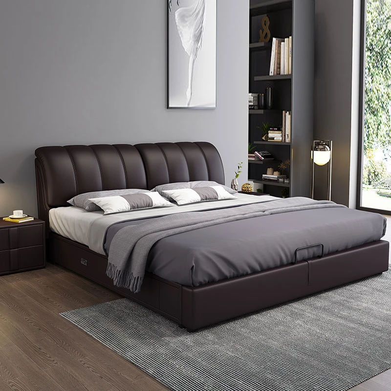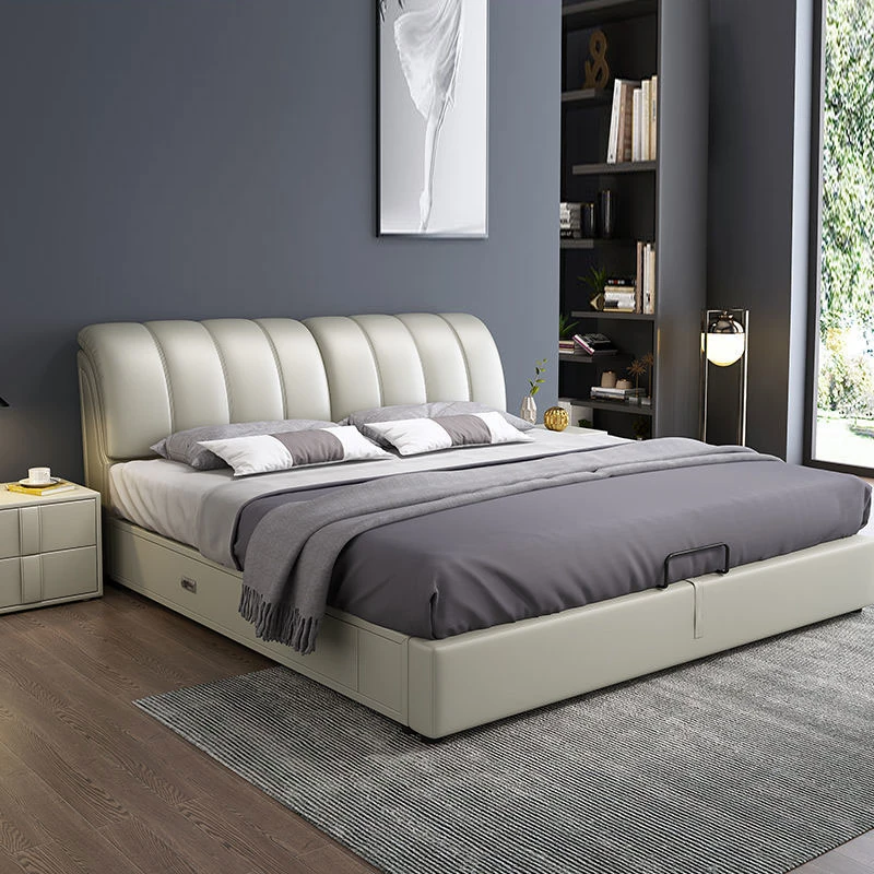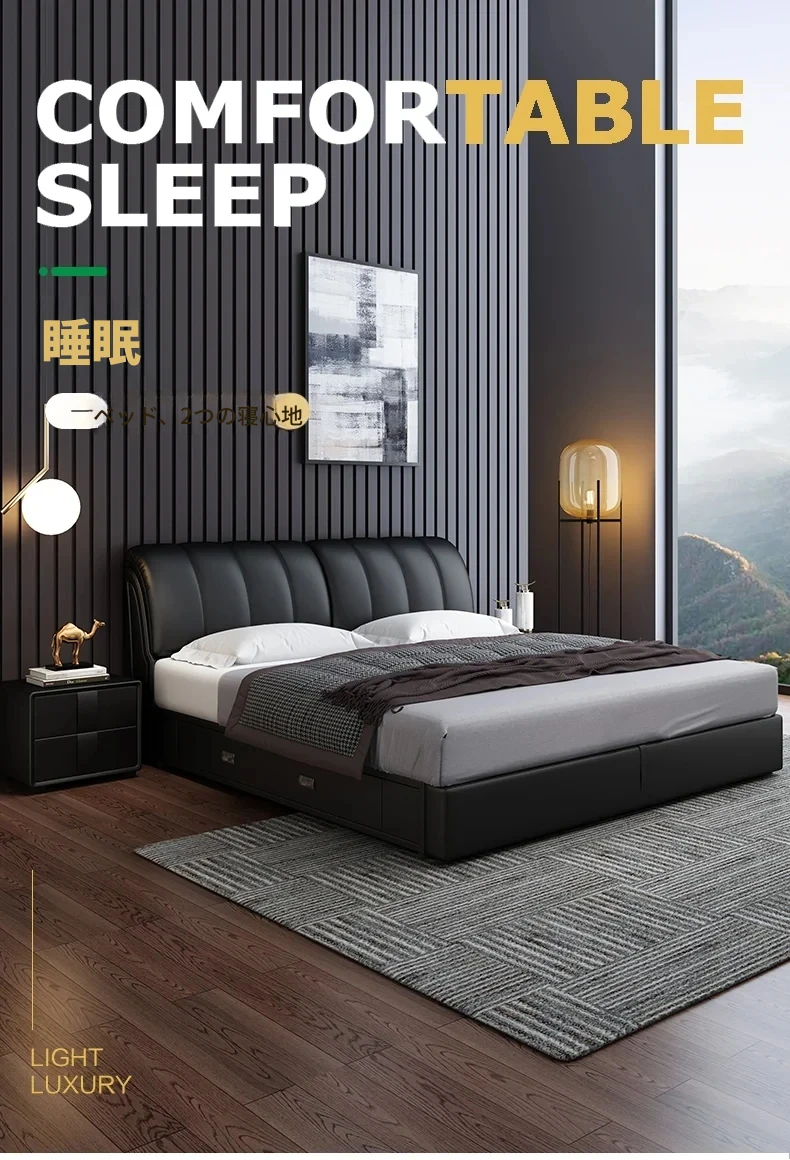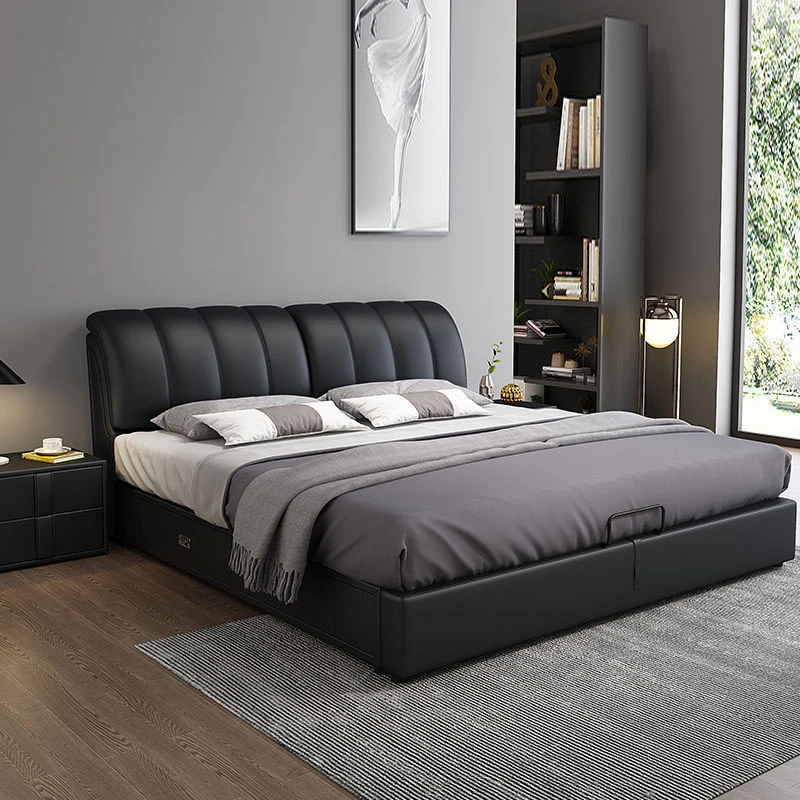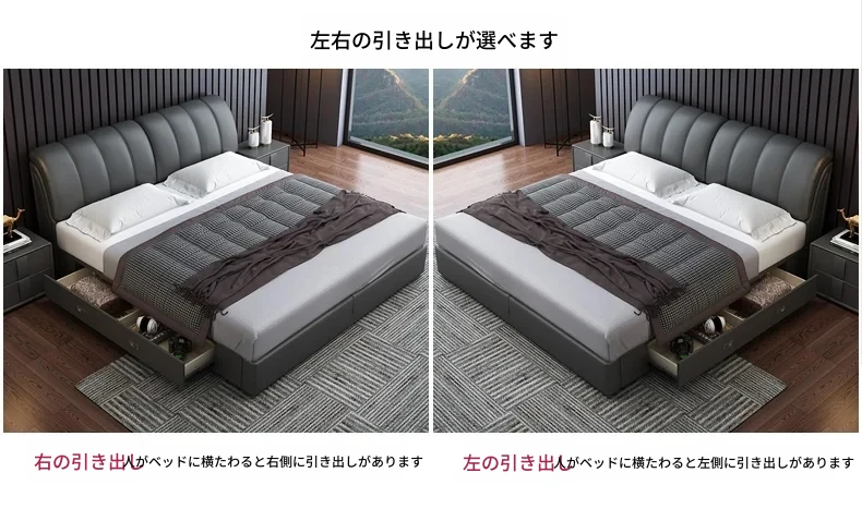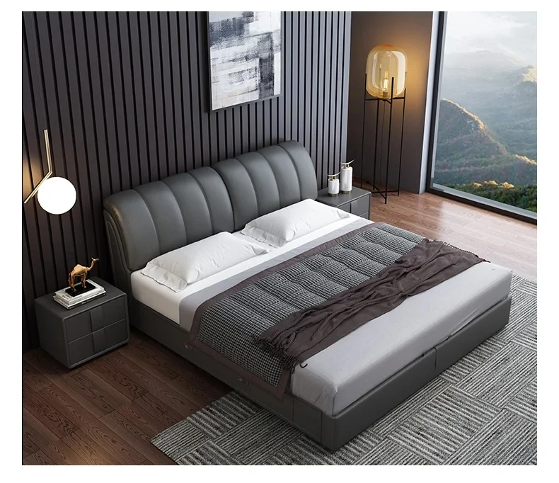 デザイン性と機能性を兼ね備えたモダンスタイルの本革ベッド | 1.8m収納付きマスターベッド | 欧風ダブルベッド | 1.5m婚礼ベッド | スタイリッシュな部屋作りをサポートします!